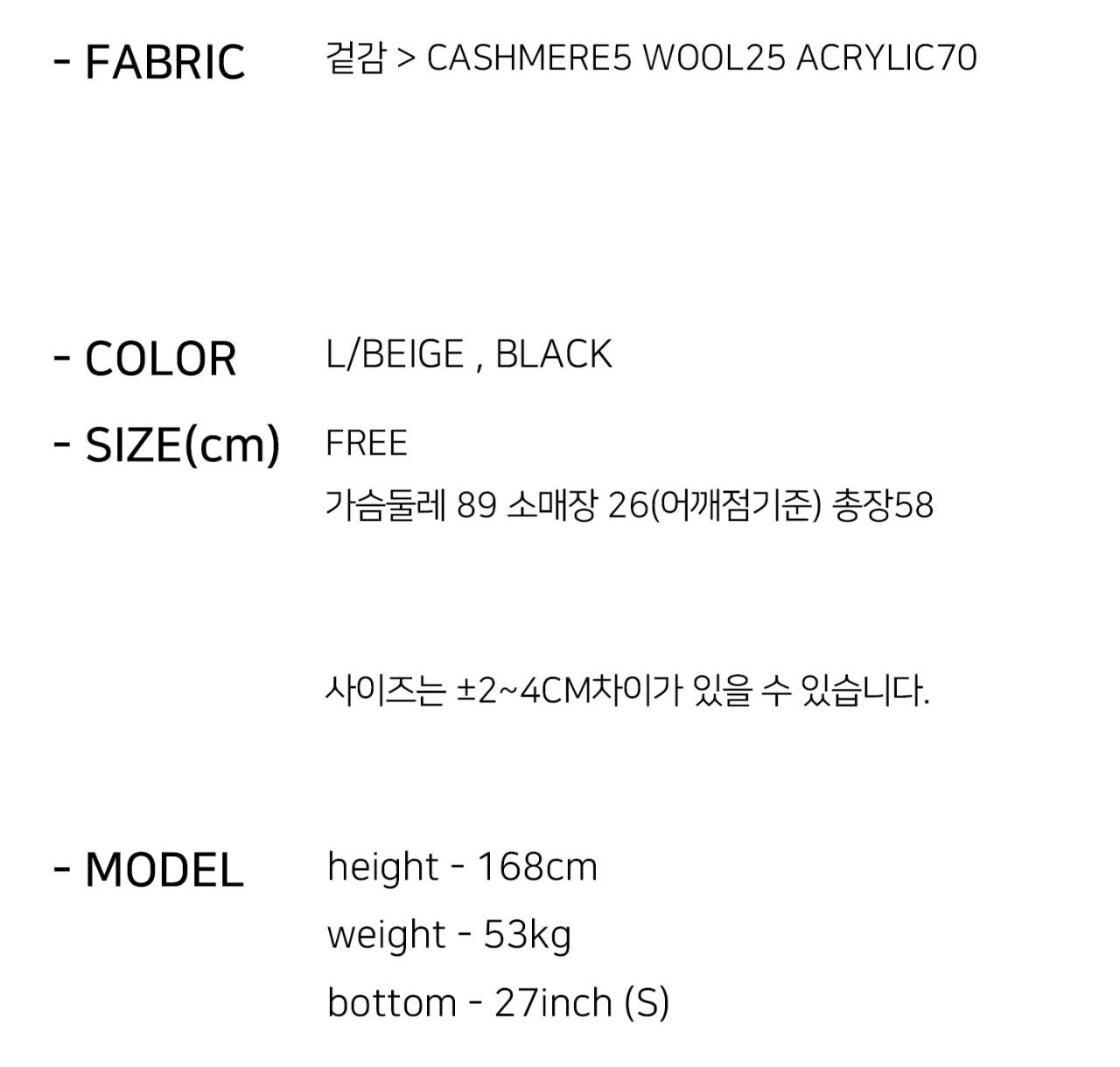 상품 리오더 시 원단의 탕(색상) 차이가 있을 수 있습니다