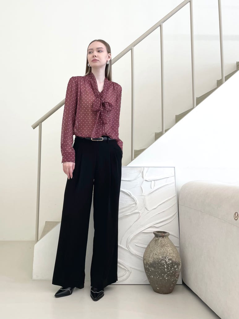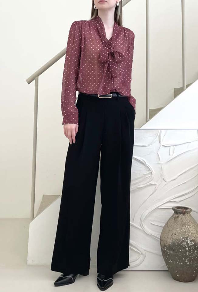 다리 라인을 한층 곧고 길어 보이게 해줄 와이드 핏의 팬츠입니다.