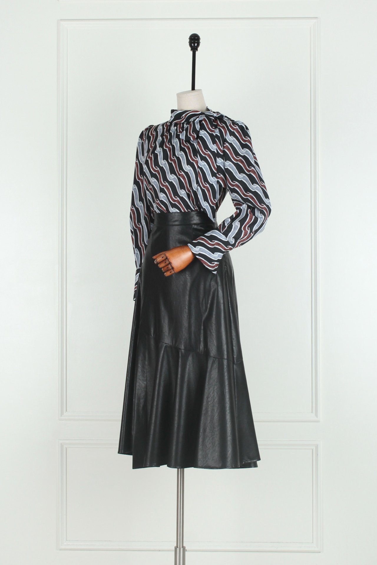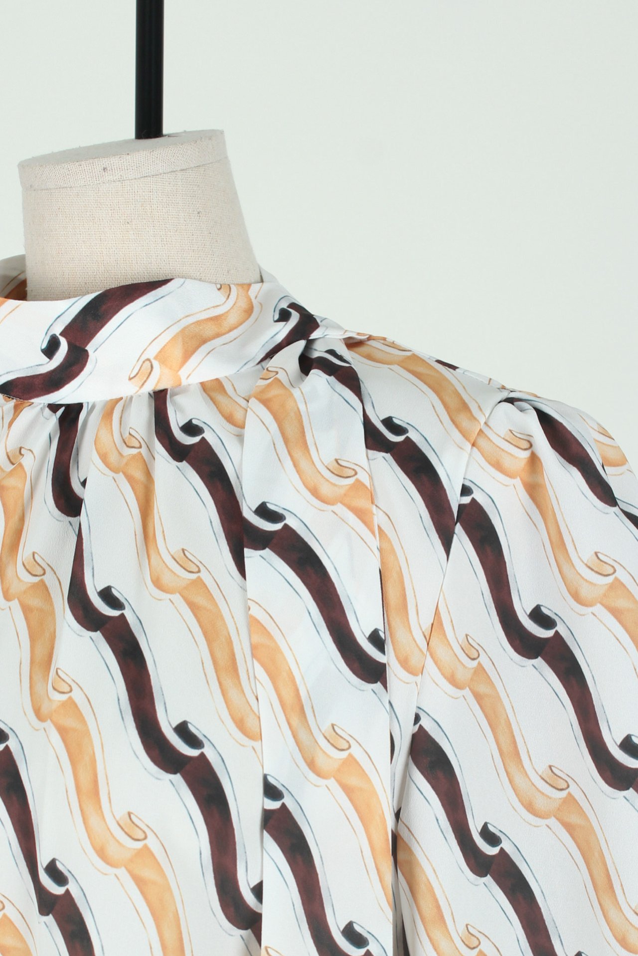 카라부터 이어지는 타이 스트랩은 묶거나 길게 늘어뜨려 다양한 스타일링이 가능합니다.