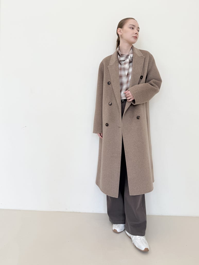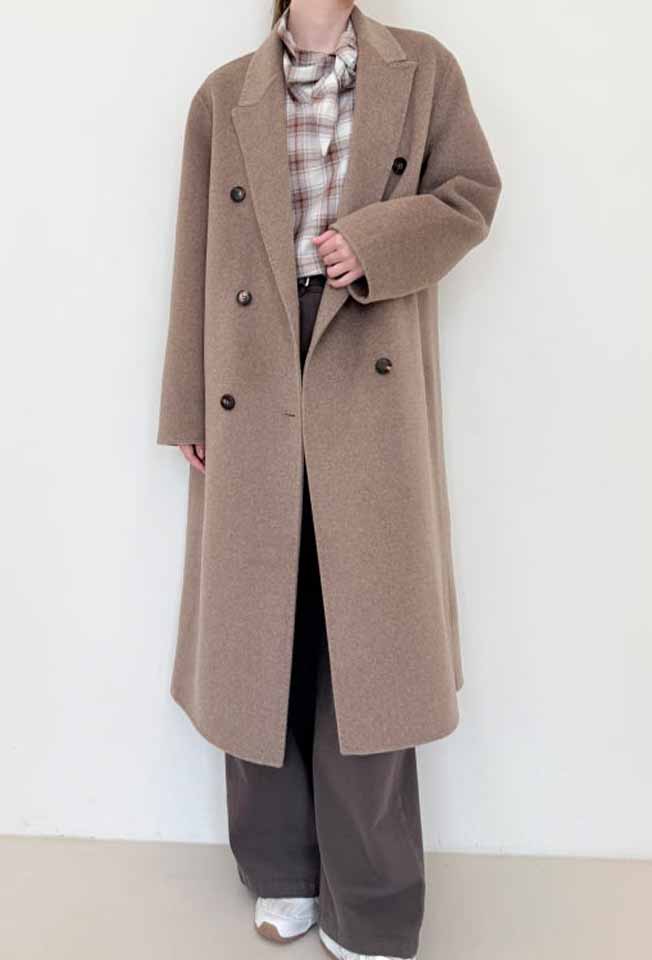 정교한 테일러링이 돋보이는 더블버튼 핸드메이드 롱 코트입니다.