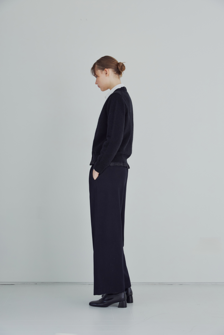 키드모헤어와 메리노모 혼방의 고급스러운 원사의 니트몸판에 클링클된 은은한 광택감이있는