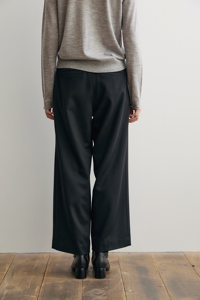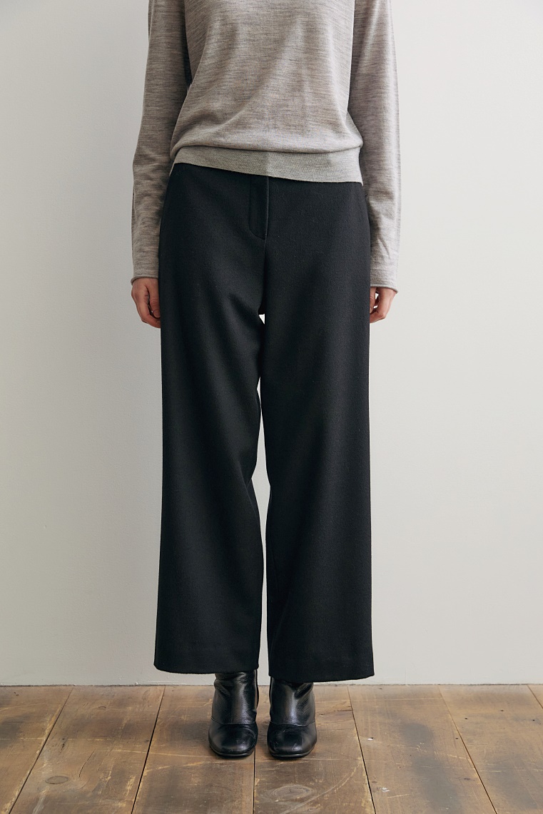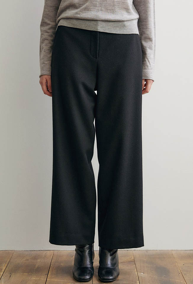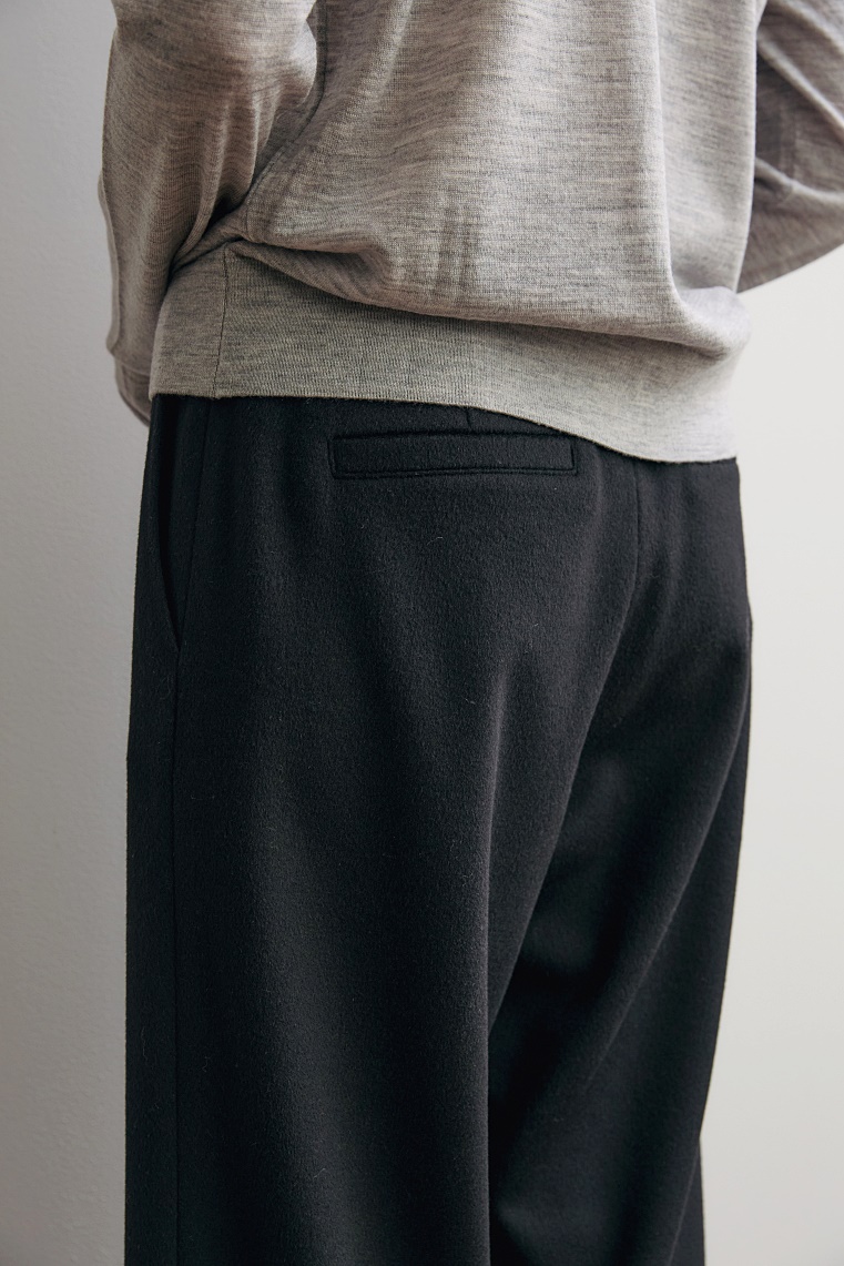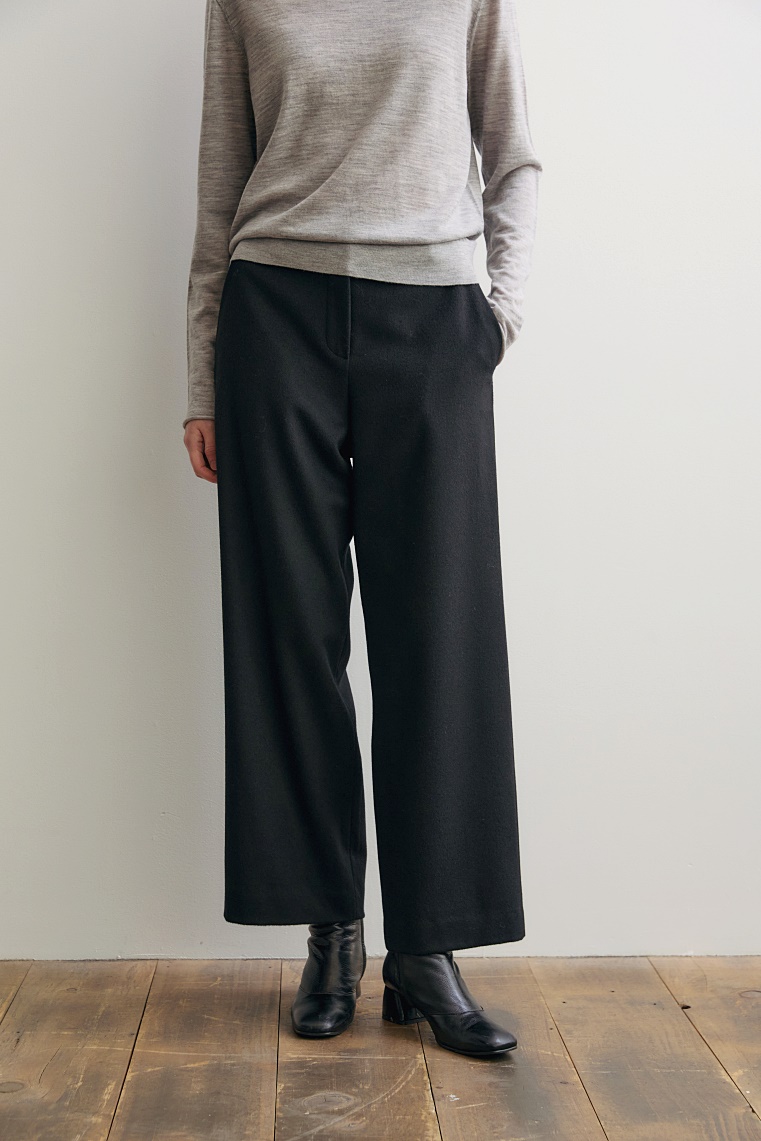 포근하면서도 드레이프감이 흐르는 캐시미어 혼방 소재와 세미 와이드 핏이 만나 감각적인 실루엣을 완성하는 밴딩 팬츠입니다.