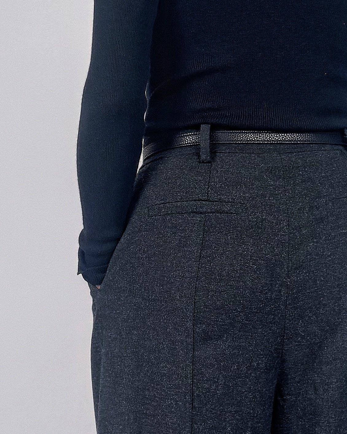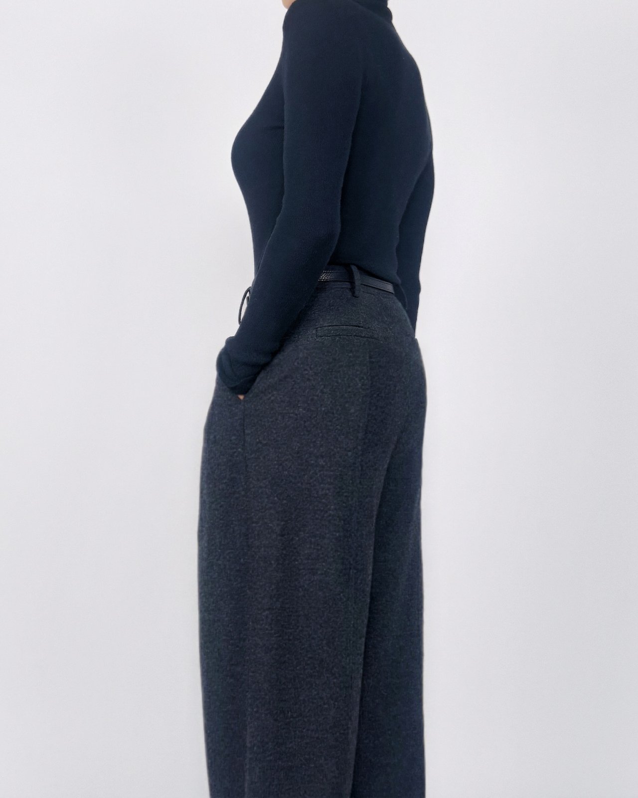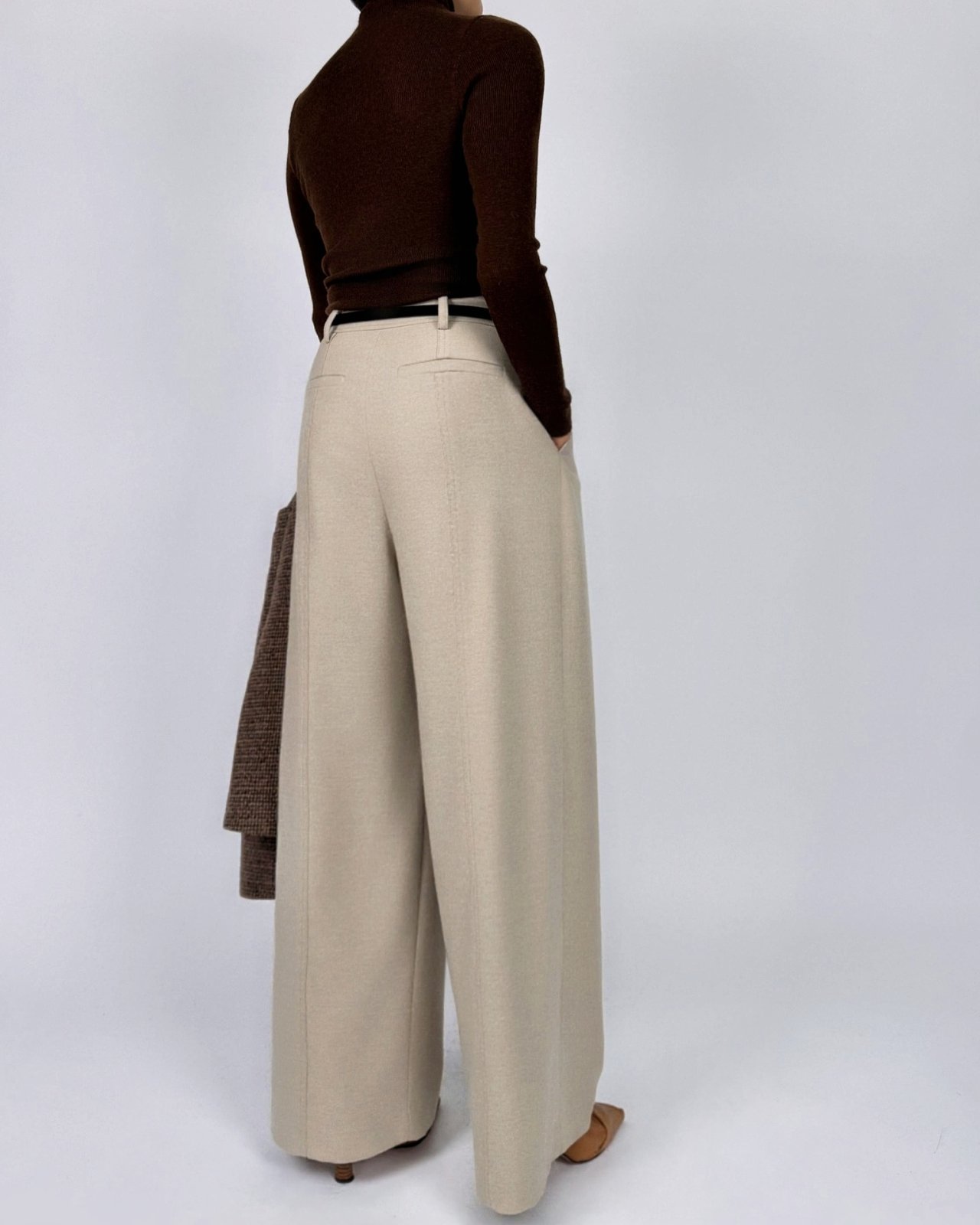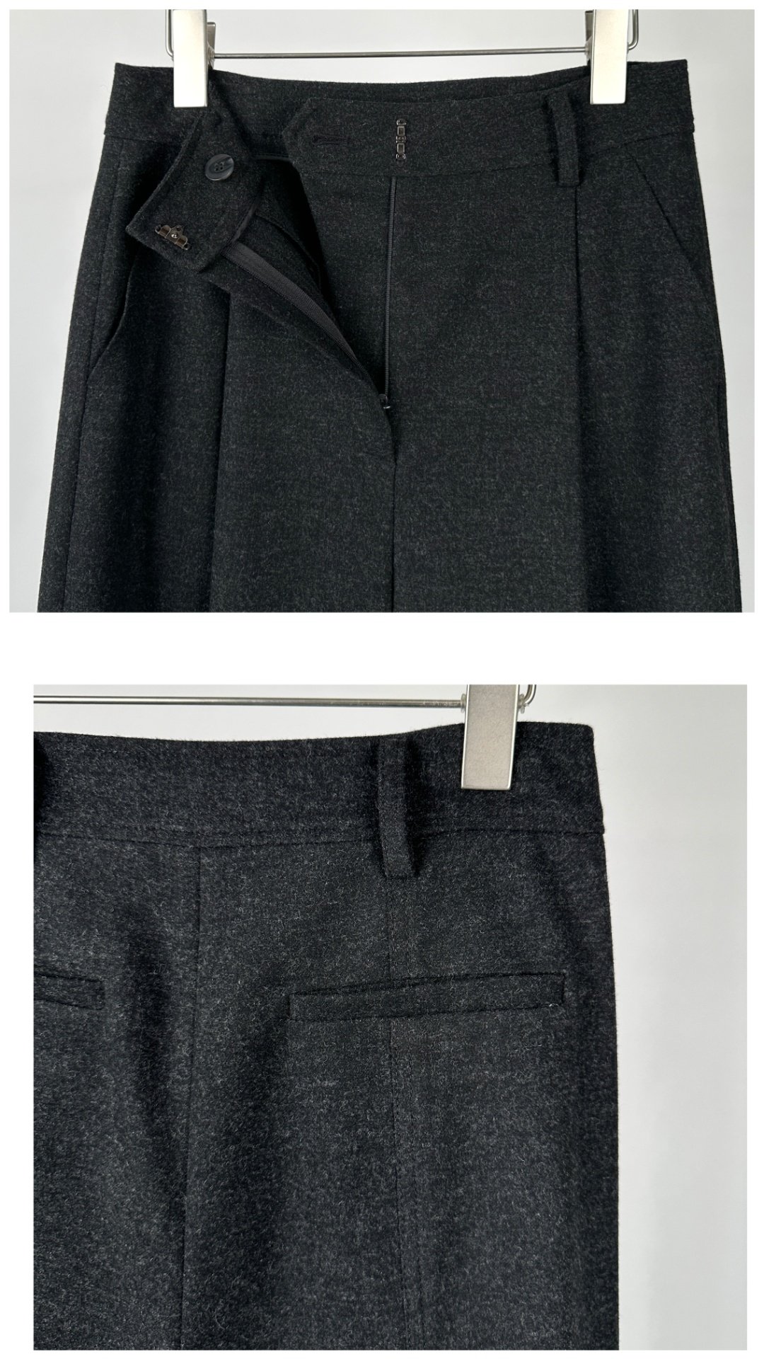 뒤면 절개에 스티치로 포인트를준 울블렌딩 팬츠