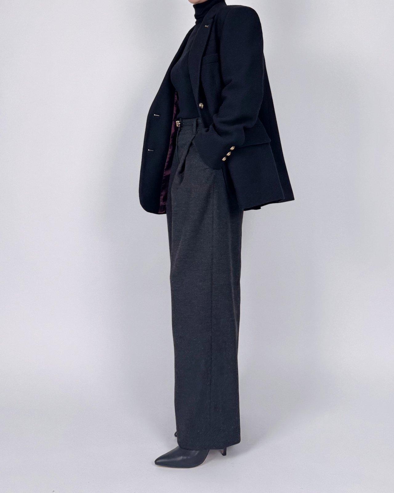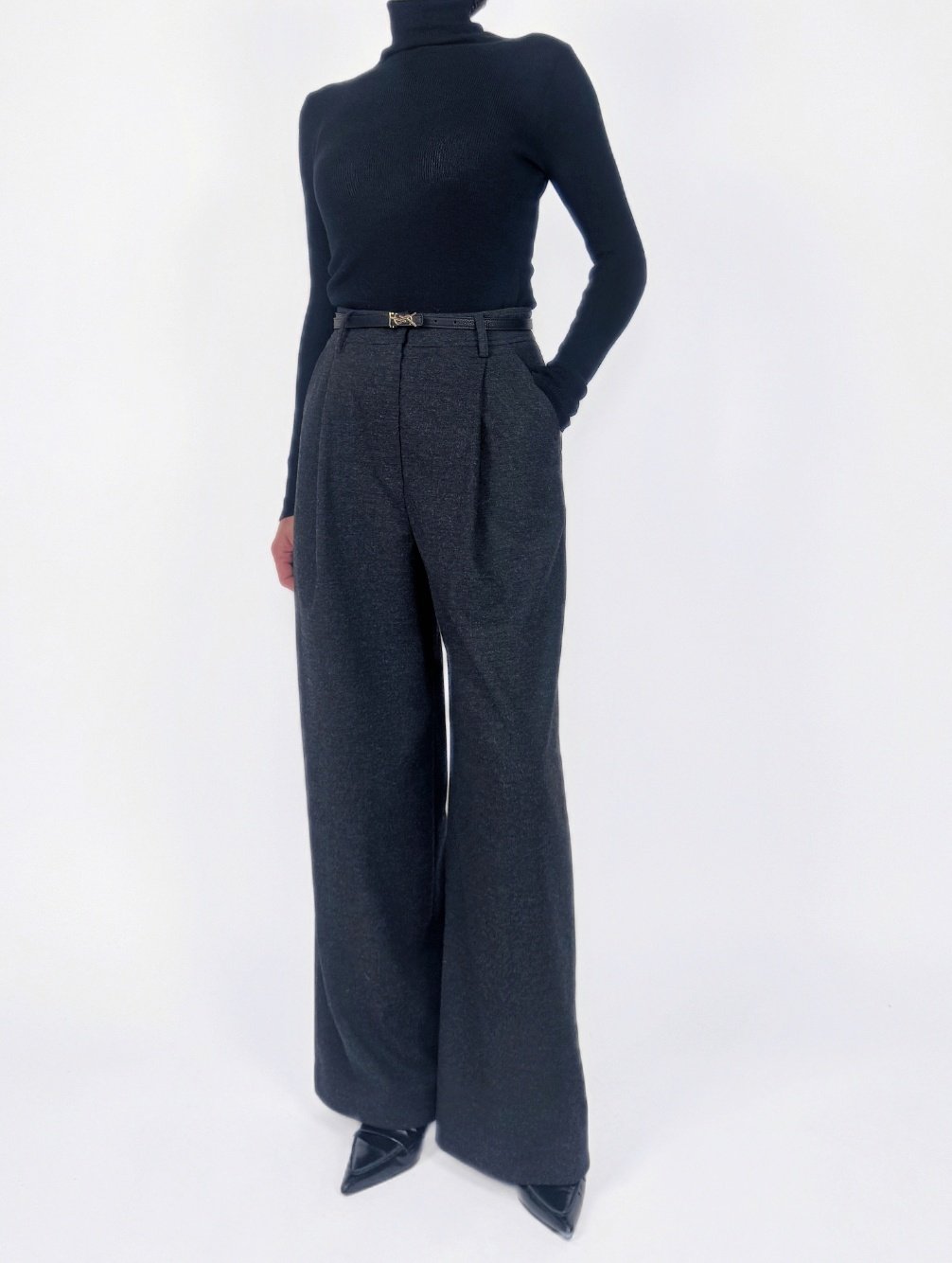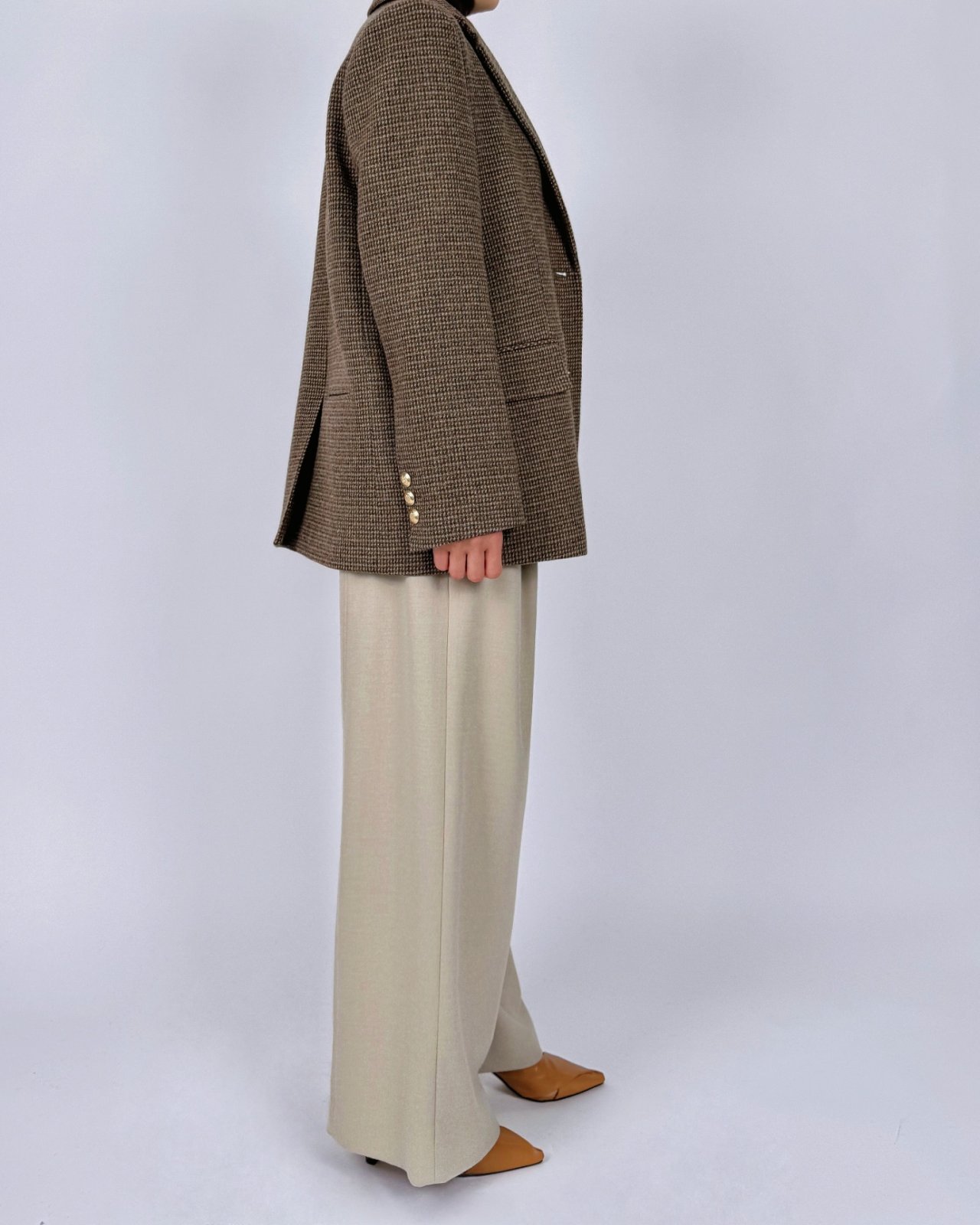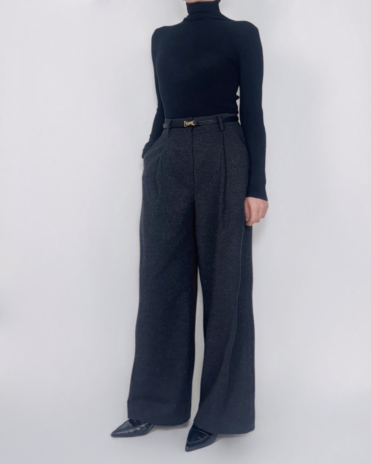 뒤면 절개에 스티치로 포인트를준 울블렌딩 팬츠