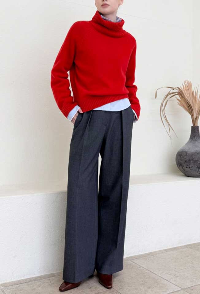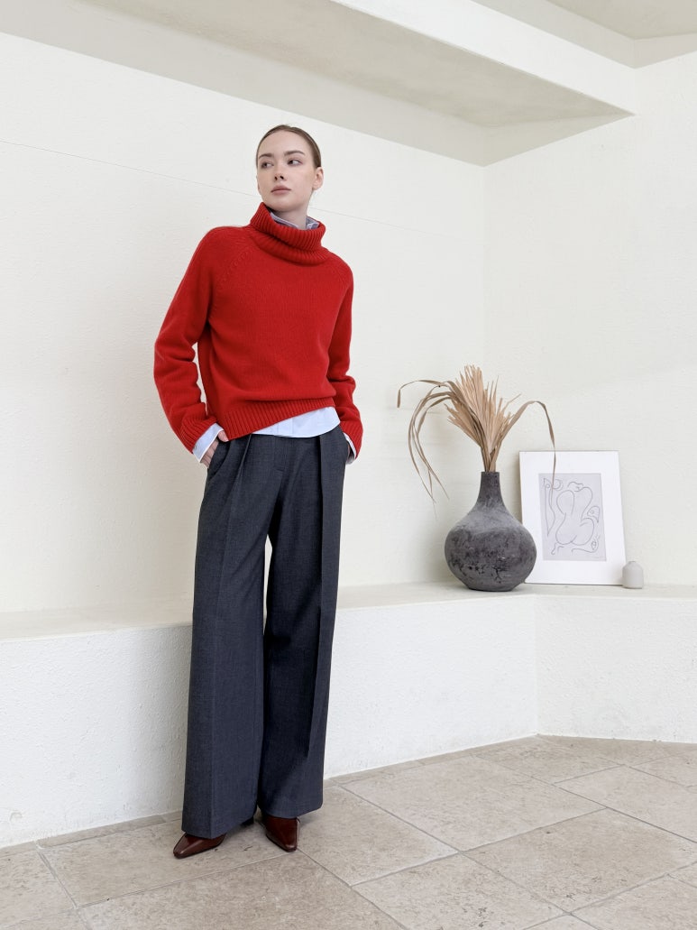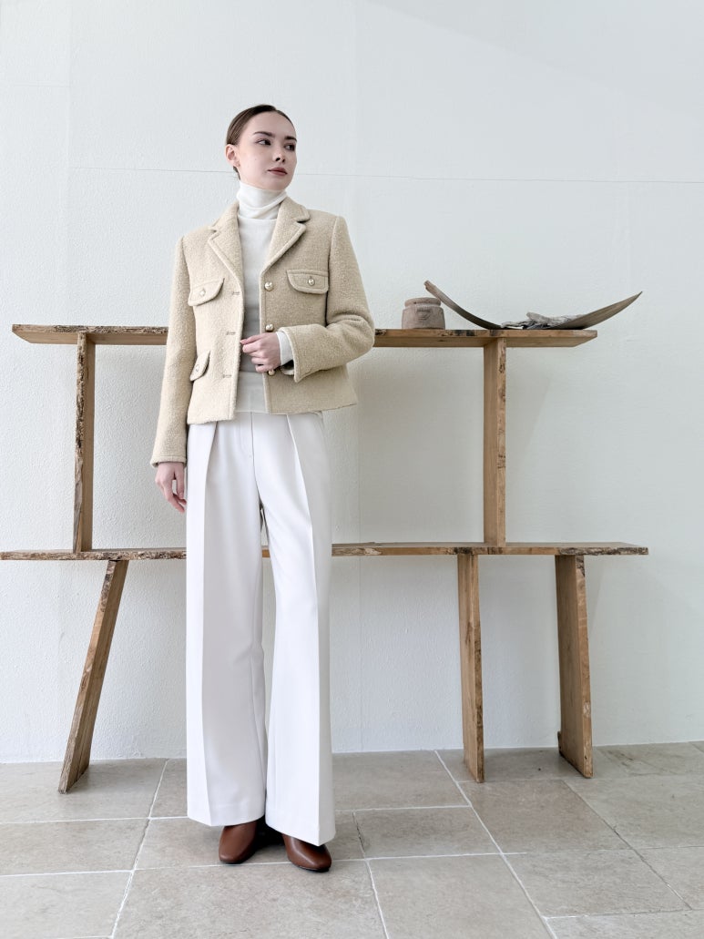 원턱 디테일과 여유로운 세미 와이드 핏 실루엣이 멋스러운 아이템입니다.