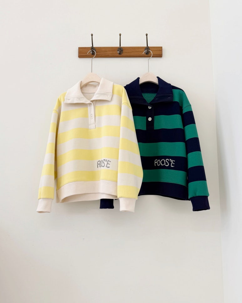 볼드한 스트라이프가 캐쥬얼한 무드의 스웻트셔츠입니다.