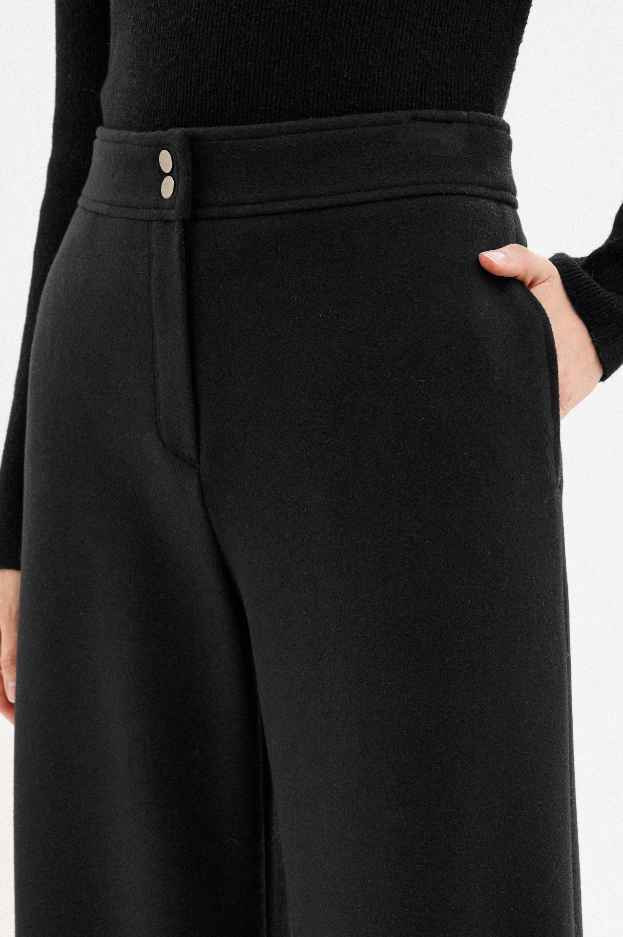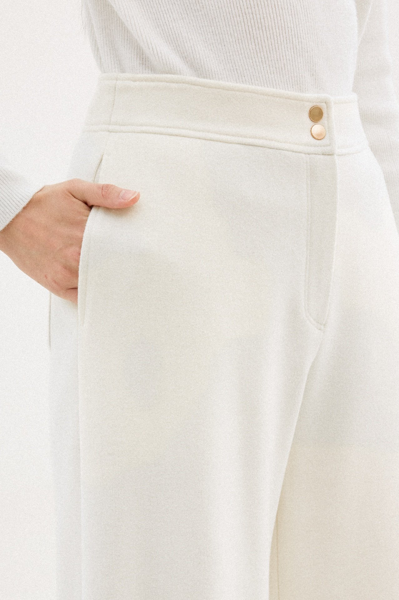 따뜻하고 부드러운 감촉의 폴리 소재를 사용한 팬츠입니다.
