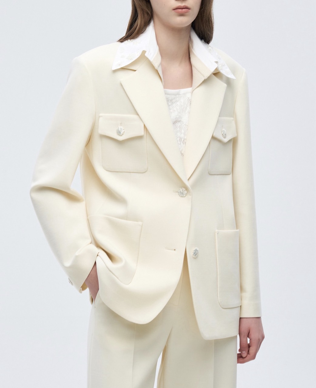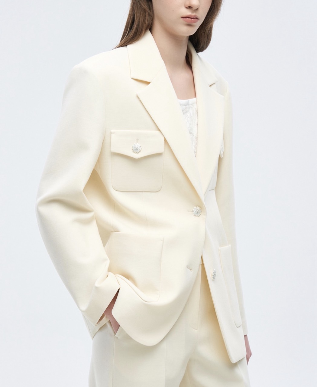 제작시 필요한 재단 및 부자재 위치를 위한 초크 자국이 있을 수 있습니다
