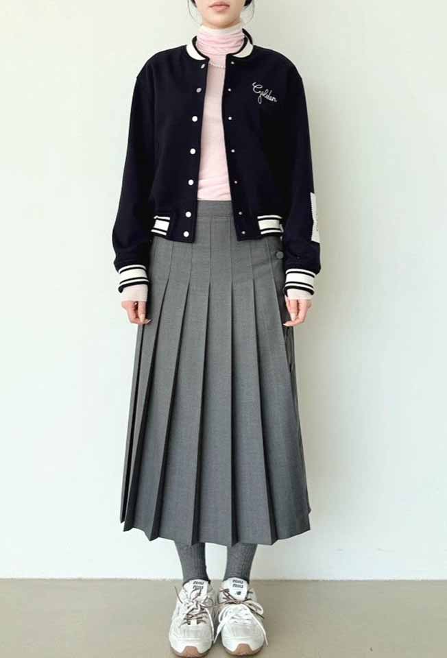 볼륨감있는 실루엣이 돋보이는 바시티점퍼입니다.