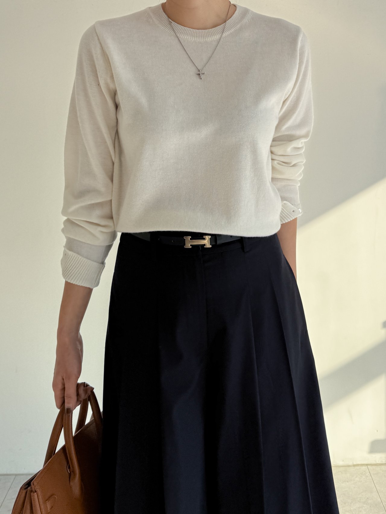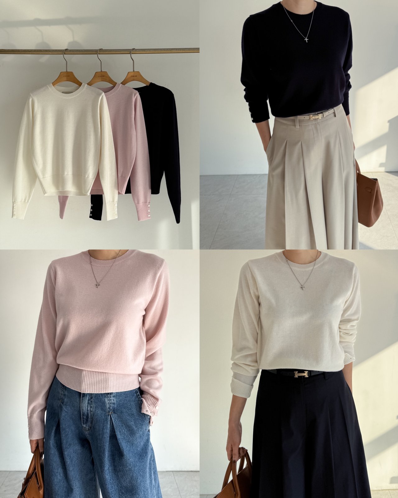 라오 울100 라운드 니트 NO52 / 아이보리,핑크,네이비 26SS