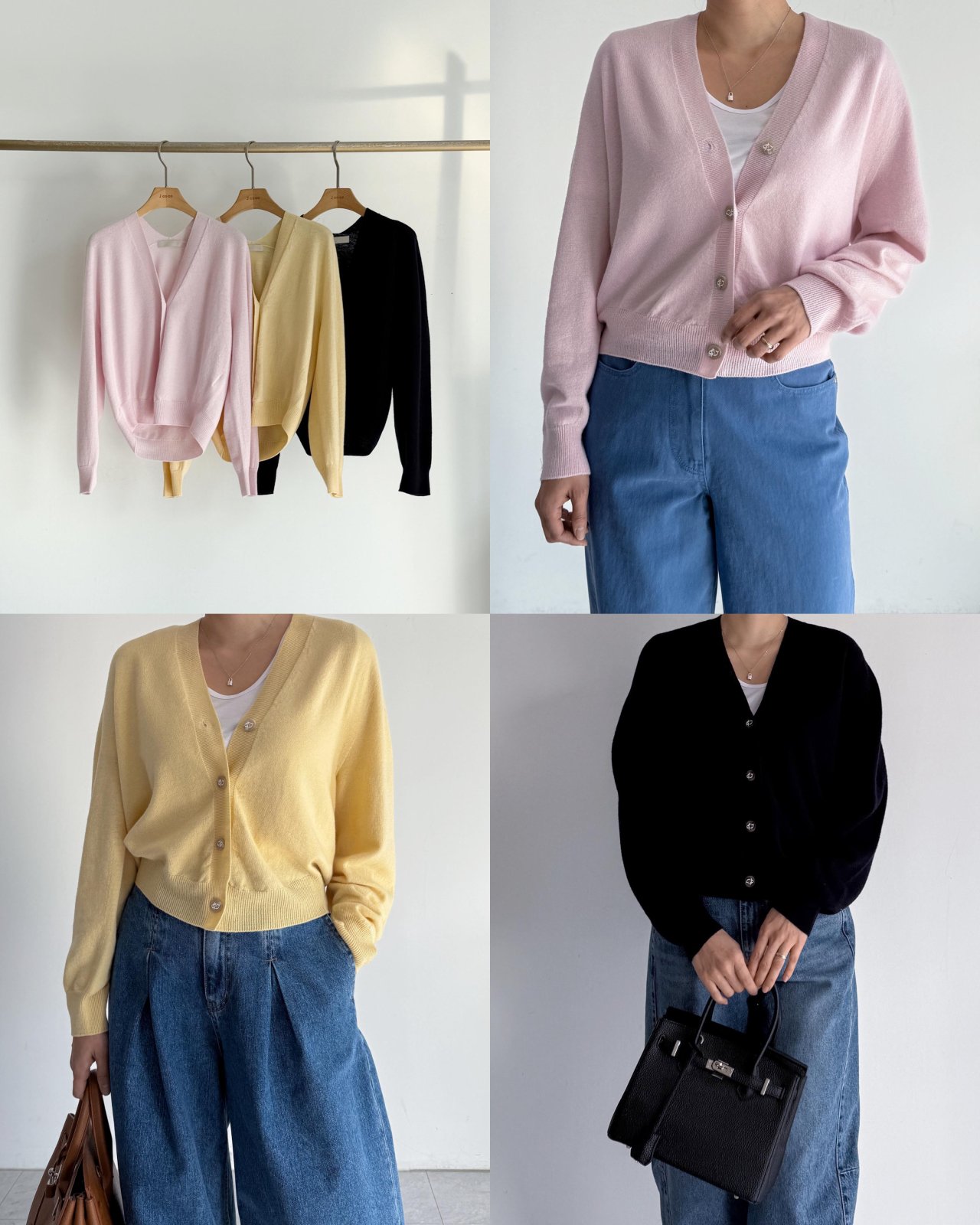 제인 버튼 가디건 NO53 / 핑크,옐로우,네이비 26SS