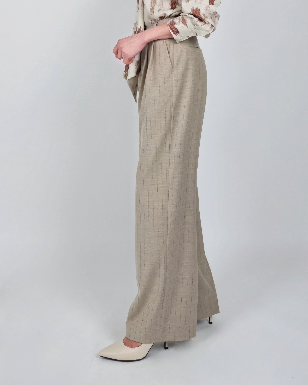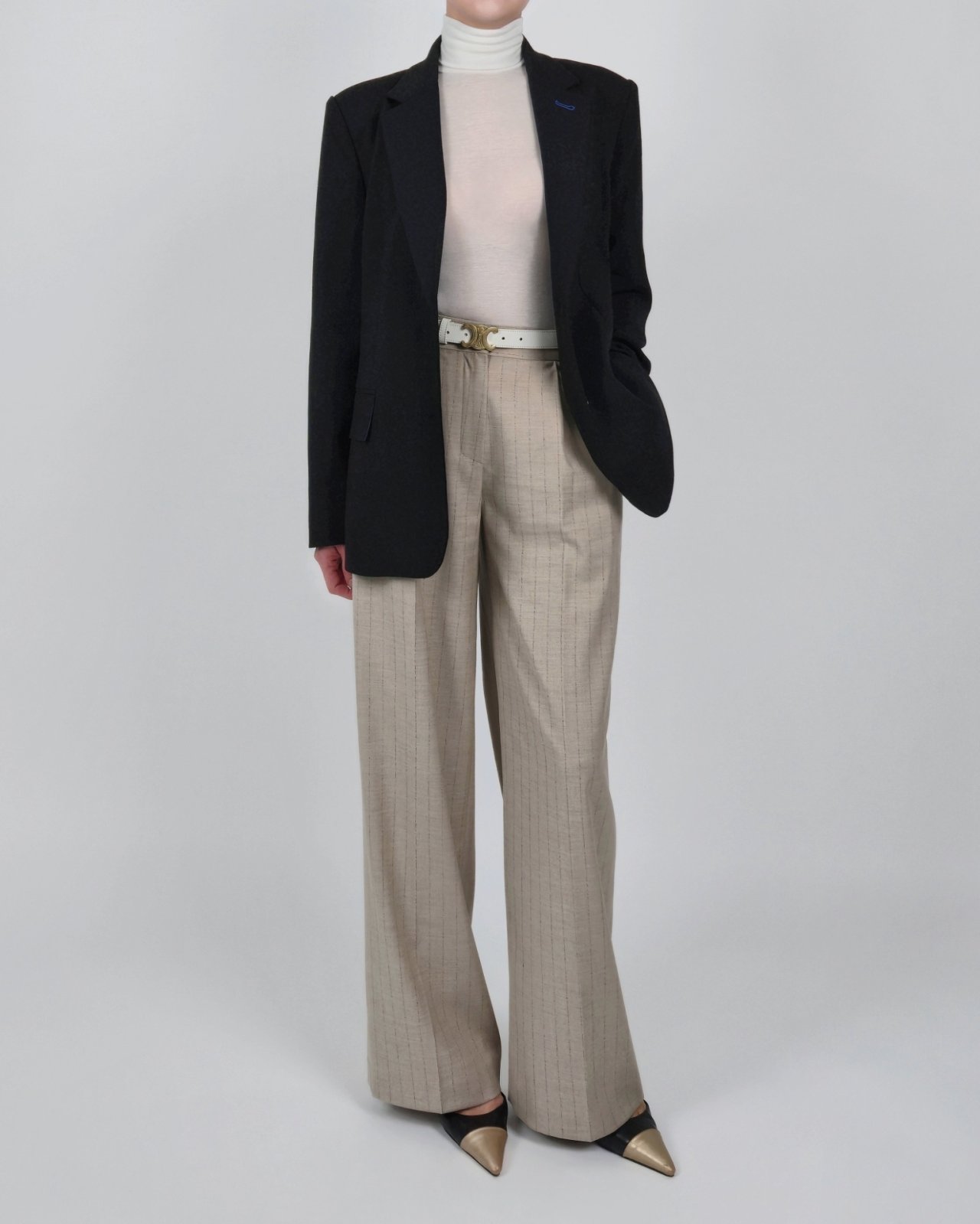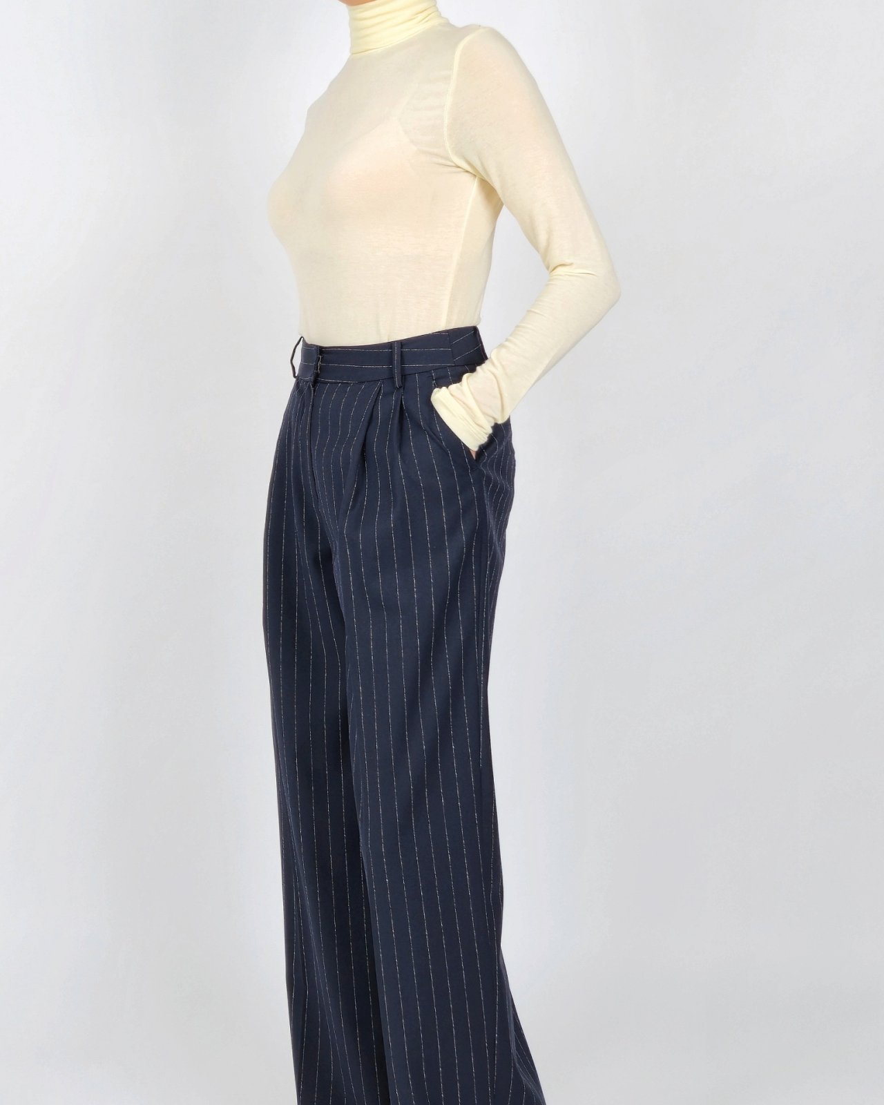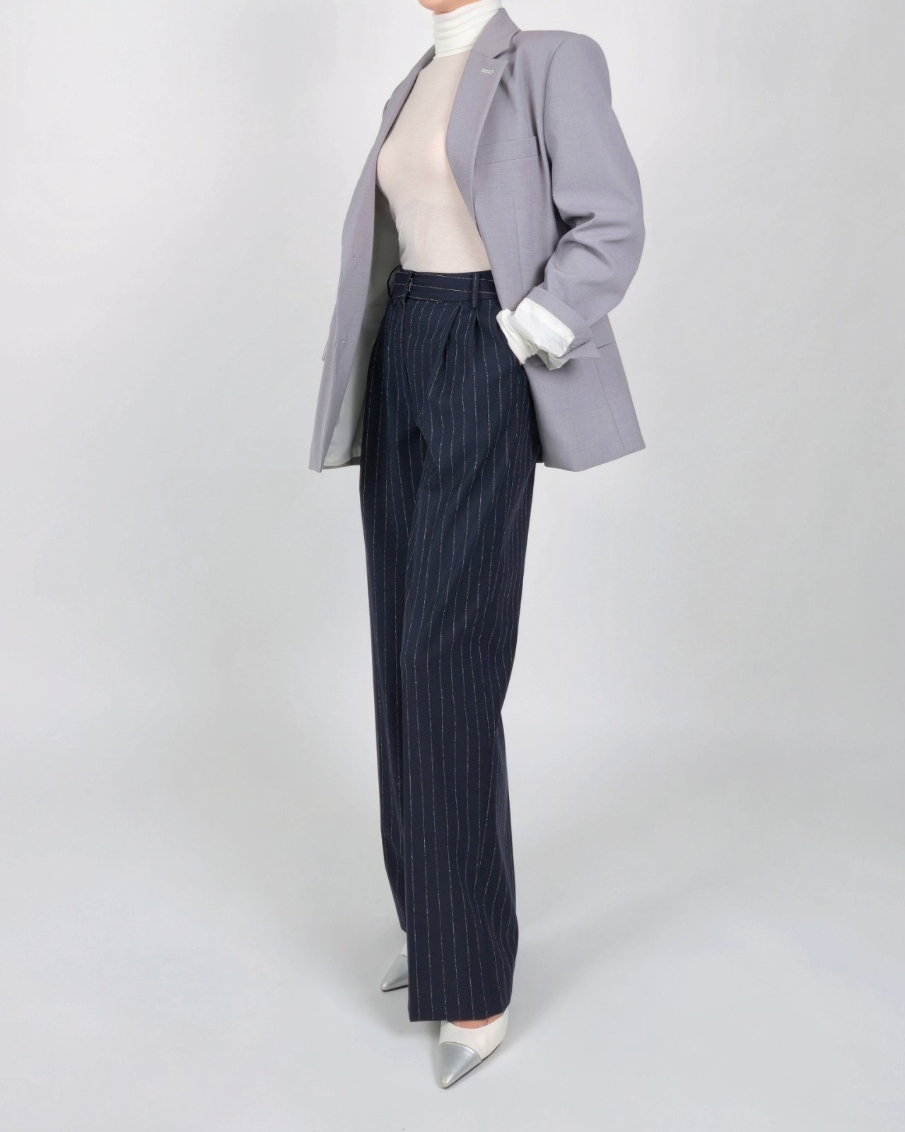 핀 스트라이프 조직감의 울블렌딩 팬츠