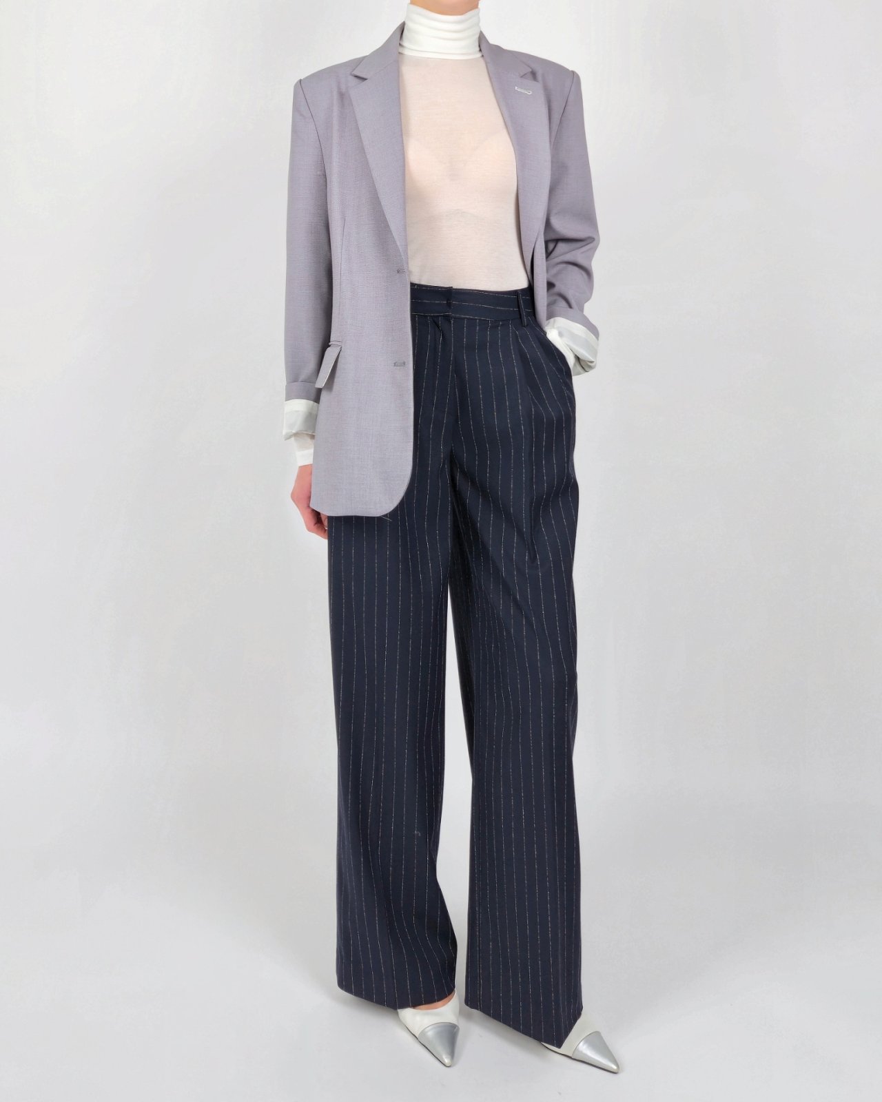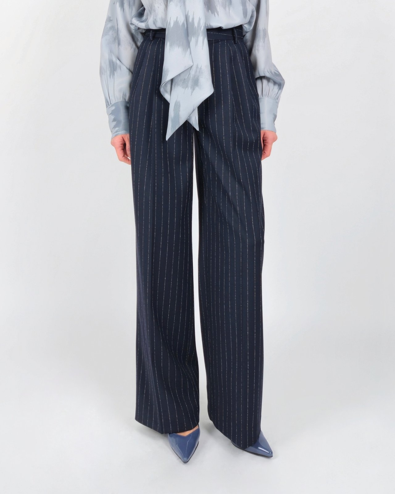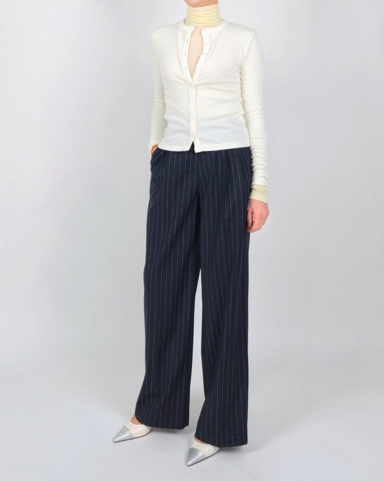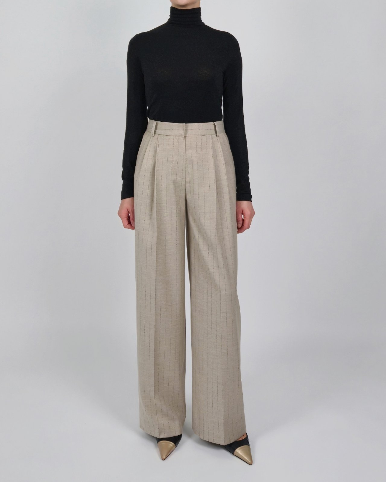 핀 스트라이프 조직감의 울블렌딩 팬츠