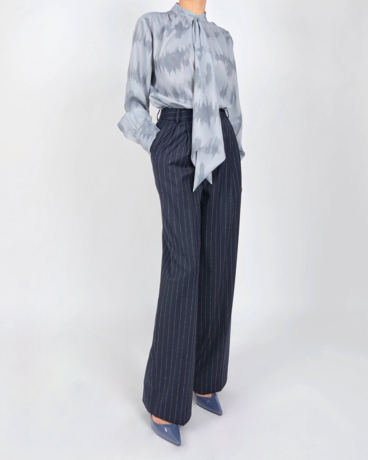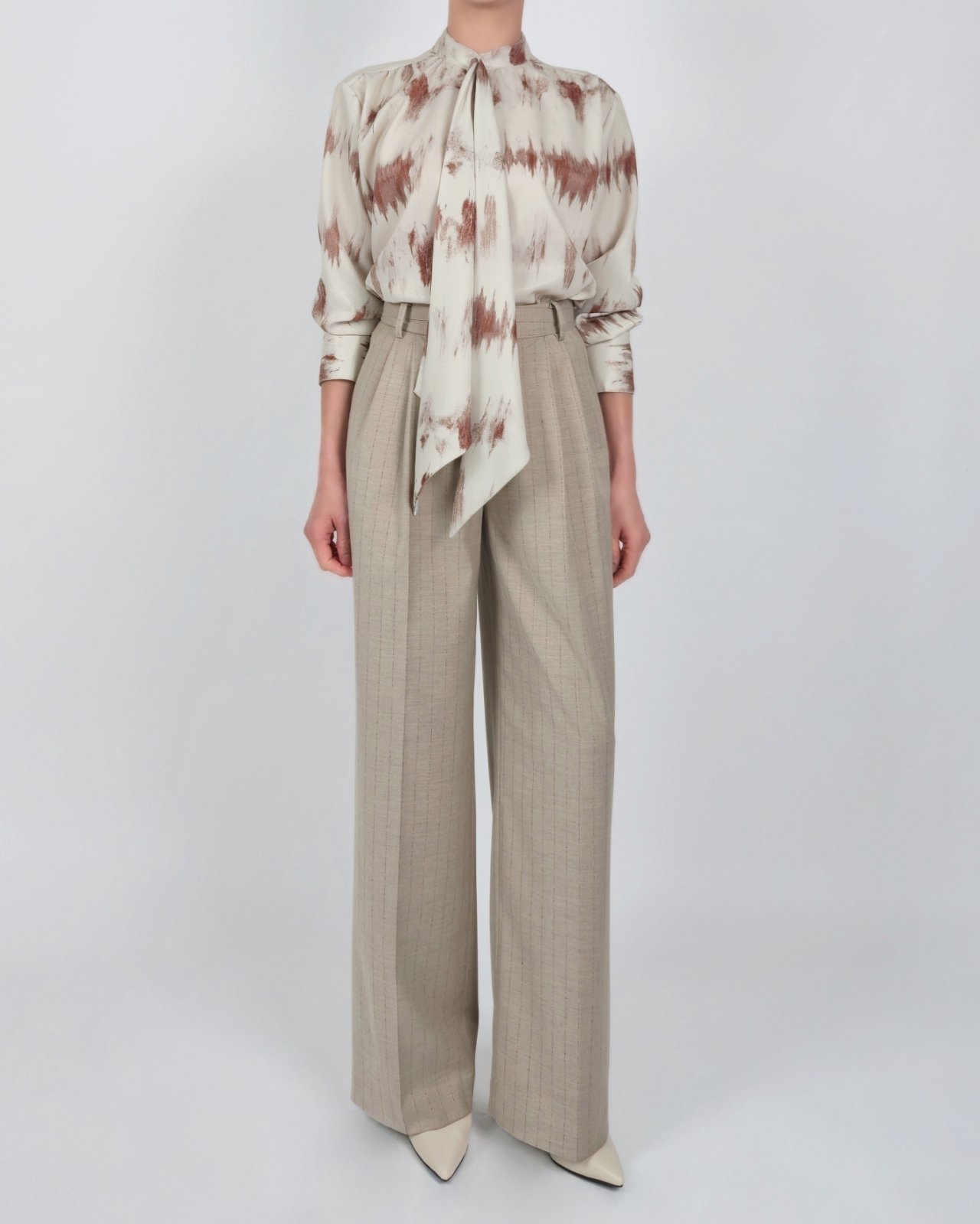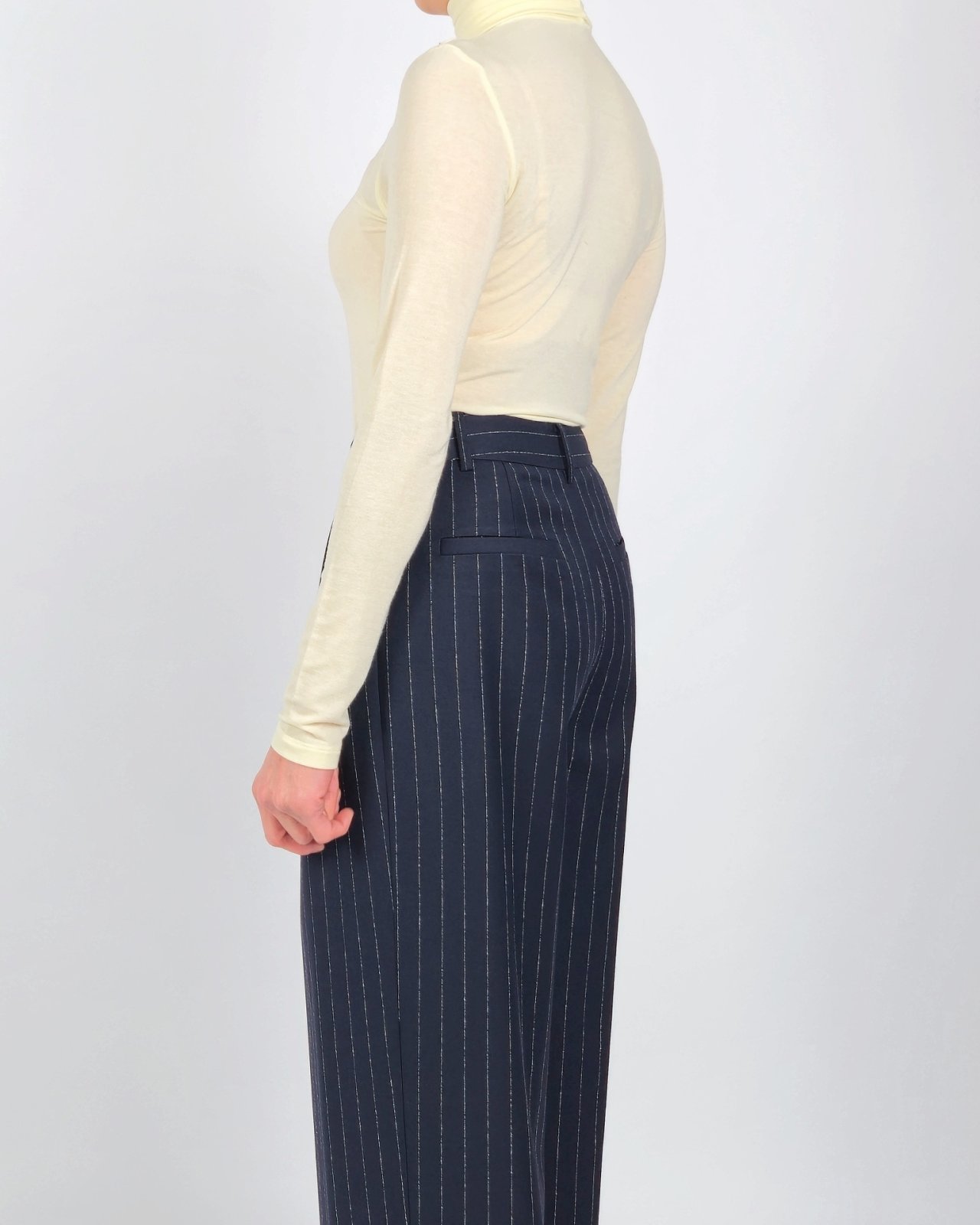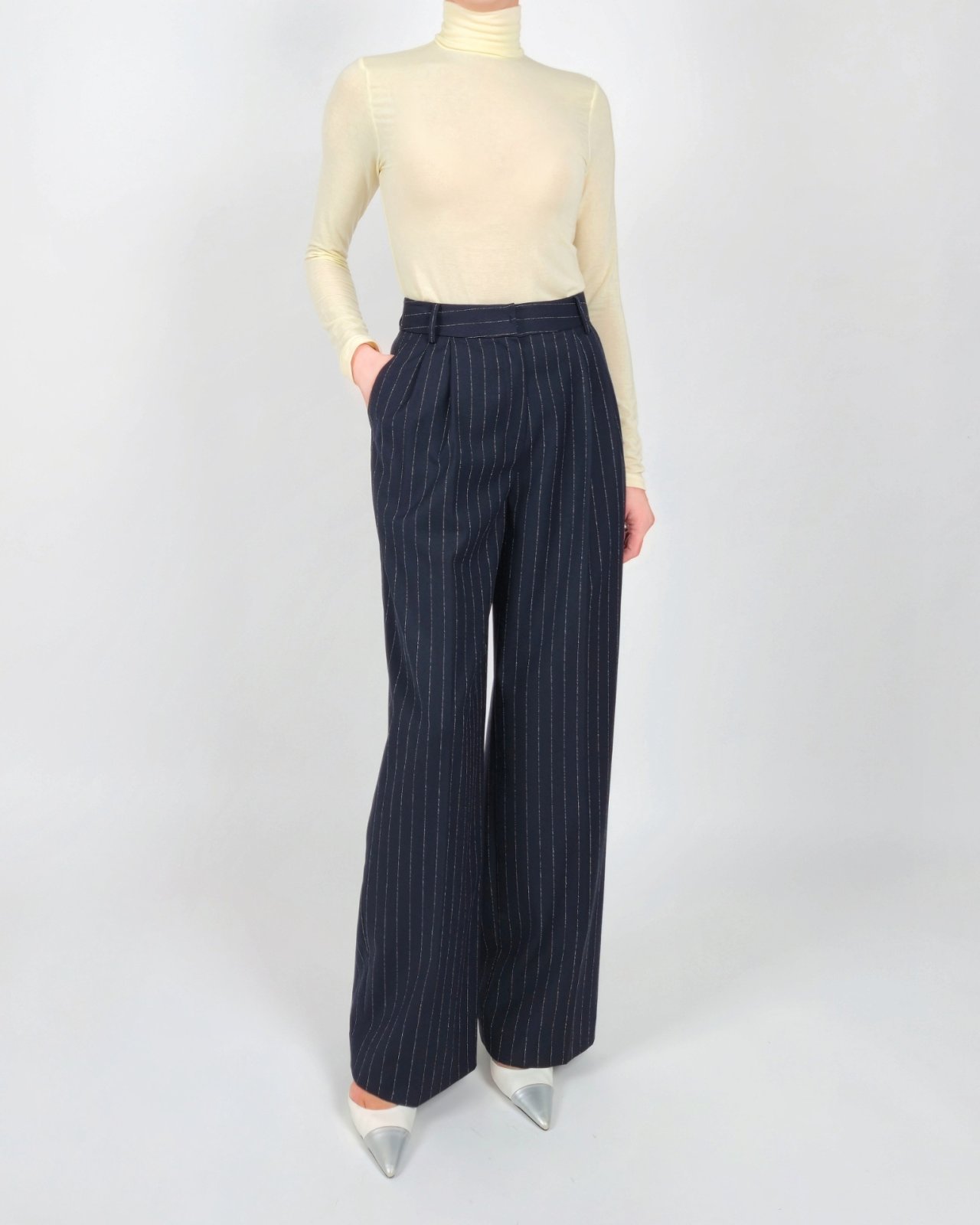 핀 스트라이프 조직감의 울블렌딩 팬츠