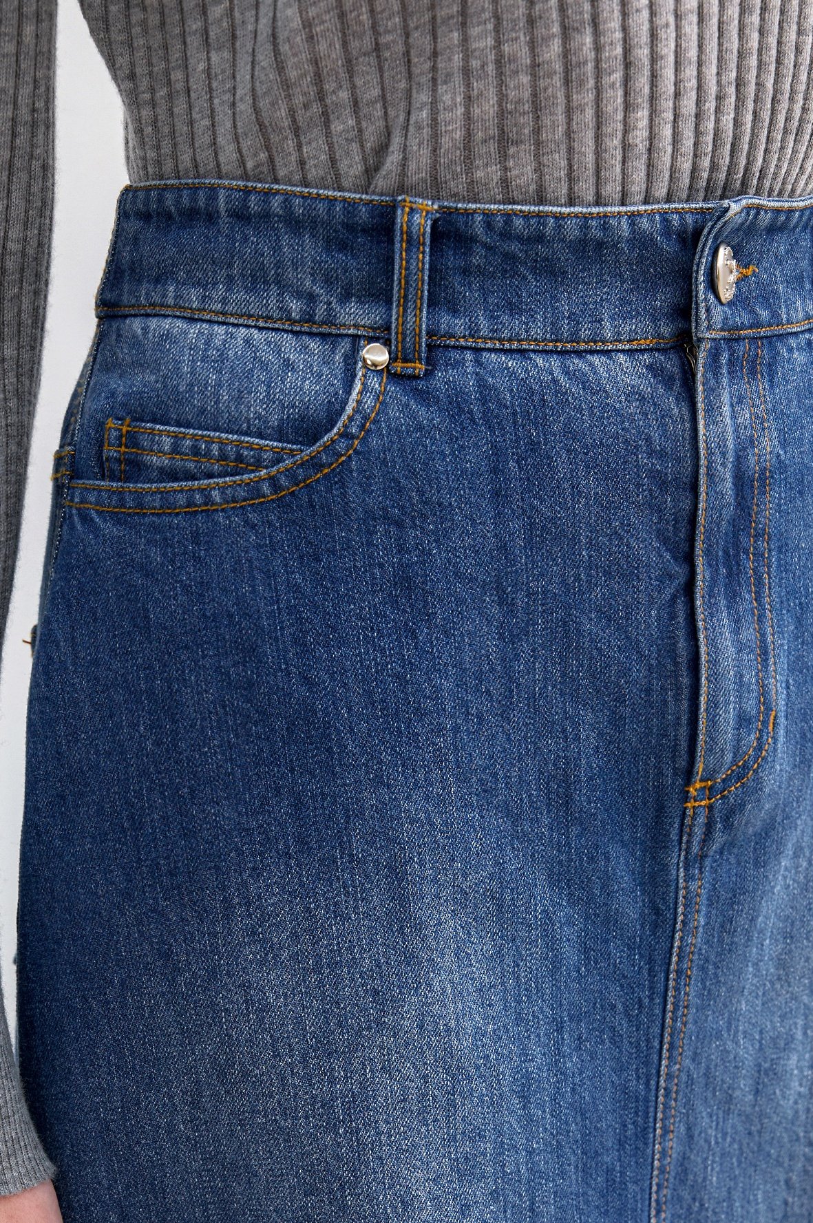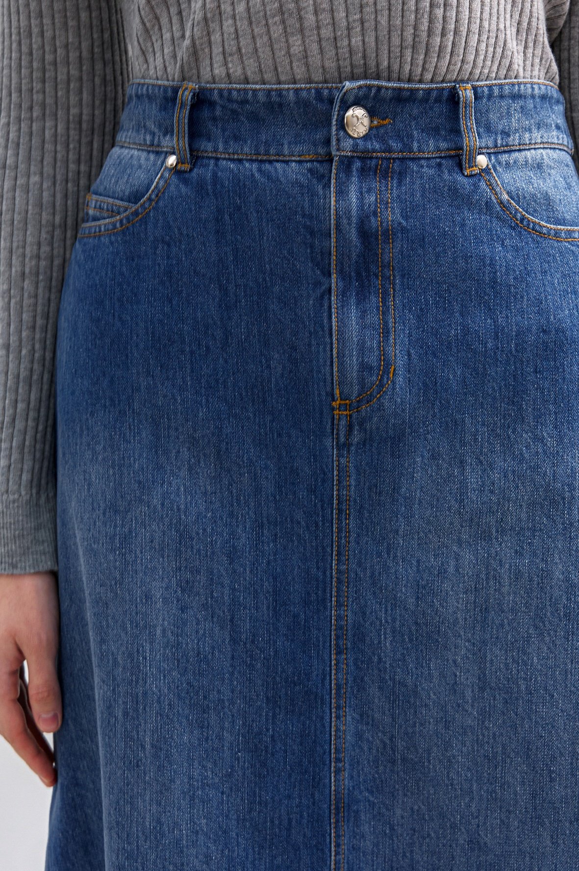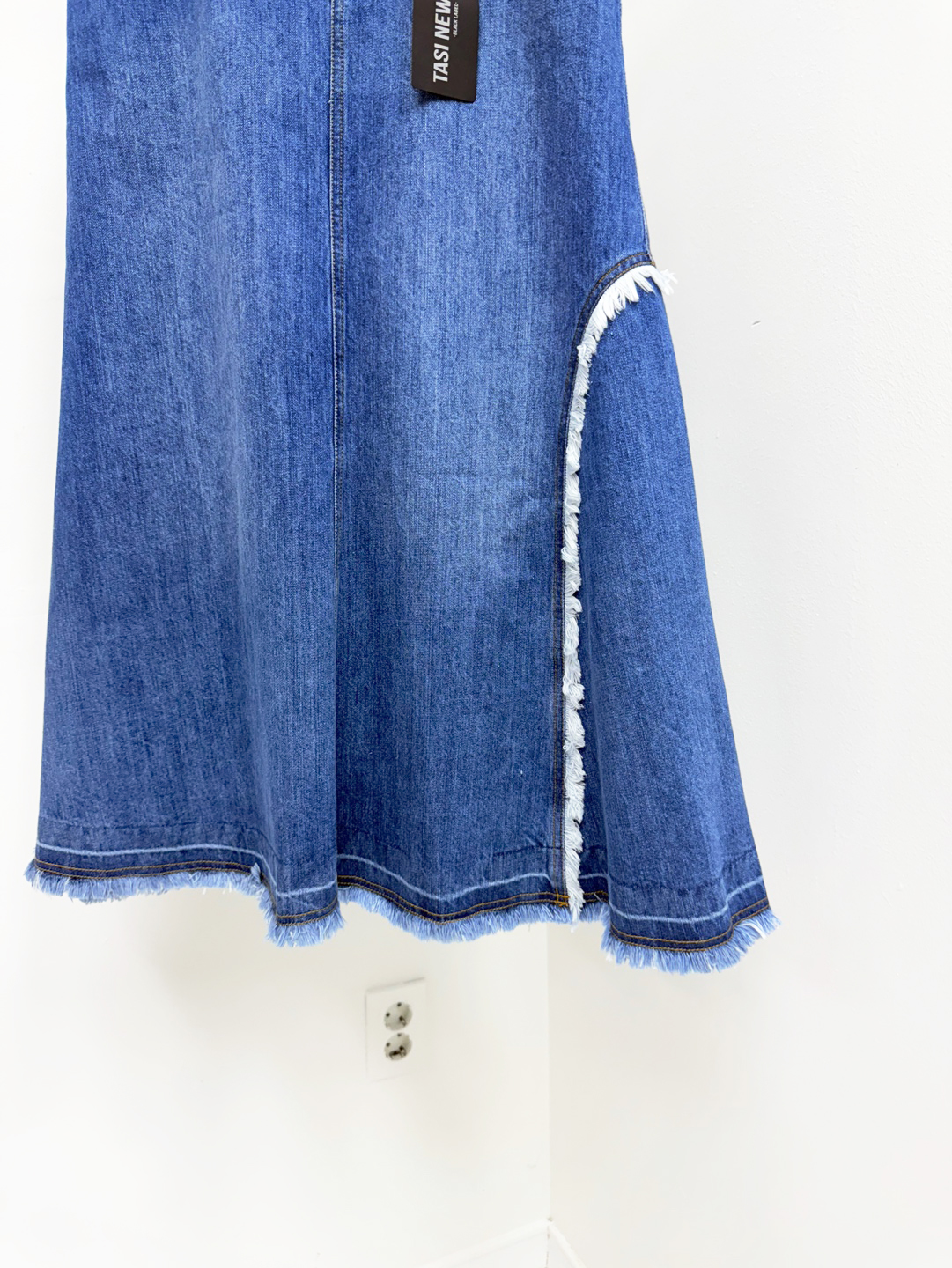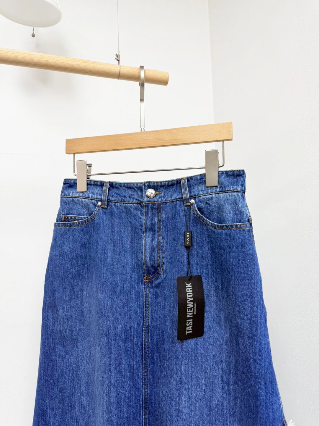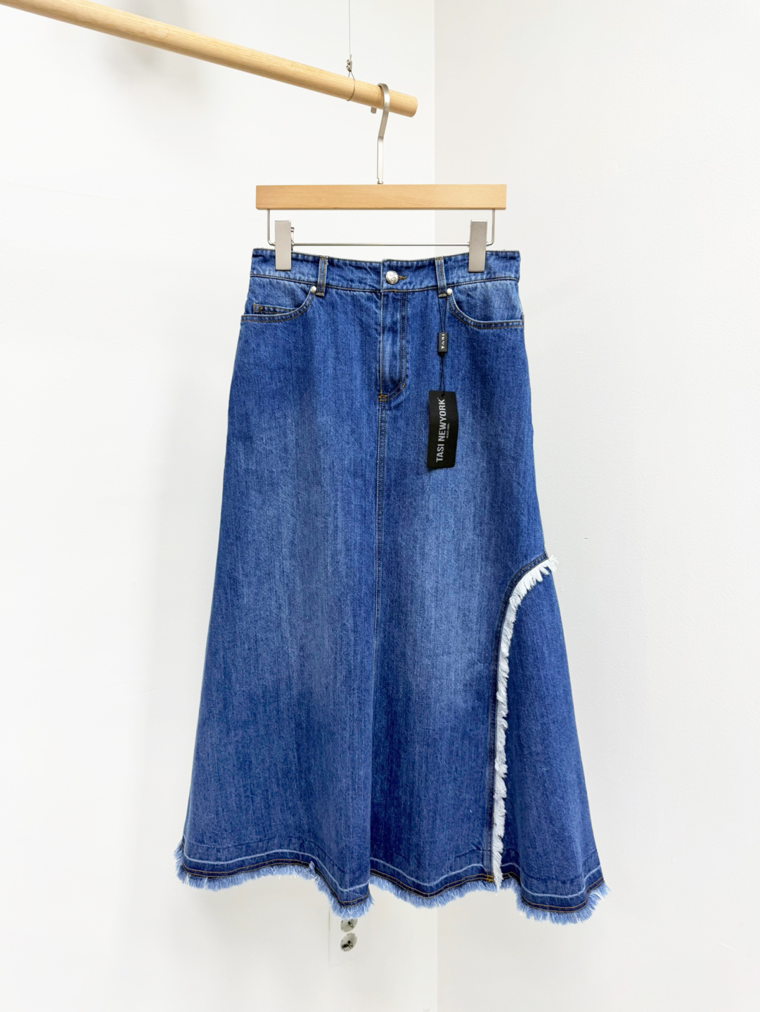 트렌디한 감성의 긴 길이감과 워싱된 데님에서 느껴지는 컬러감이 돋보이는 스커트로서 5개의 포켓이 있어 실용적입니다.