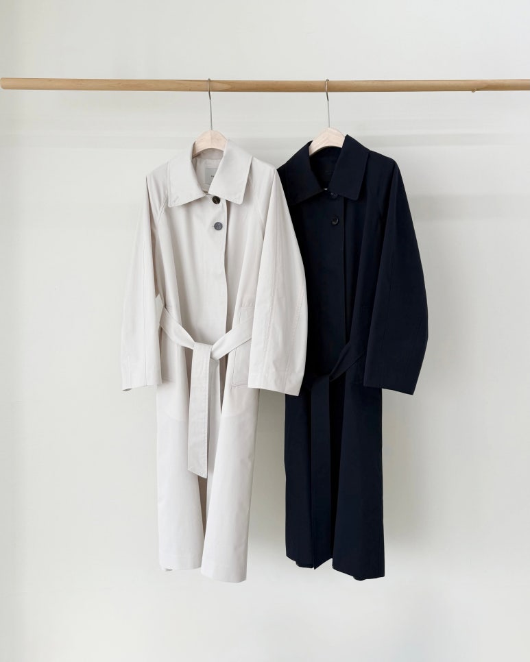 입체적인 실루엣과 버튼 디테일이 돋보이는 롱 트렌치코트입니다.