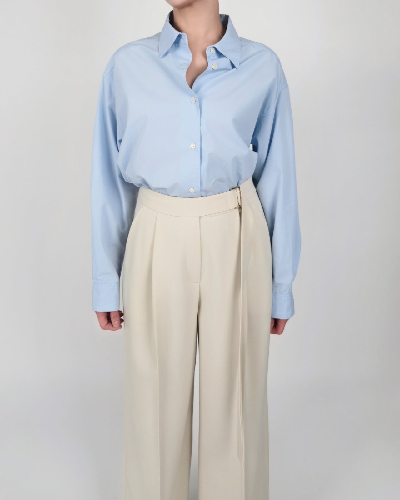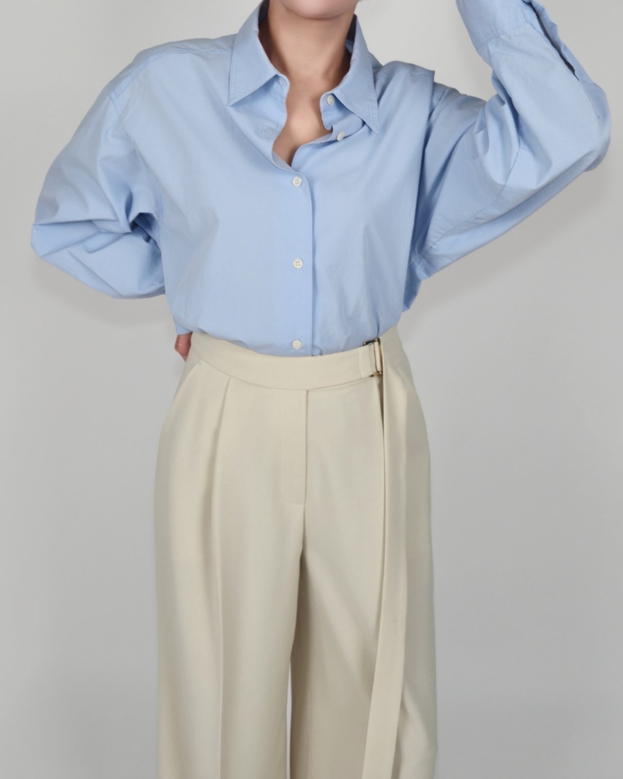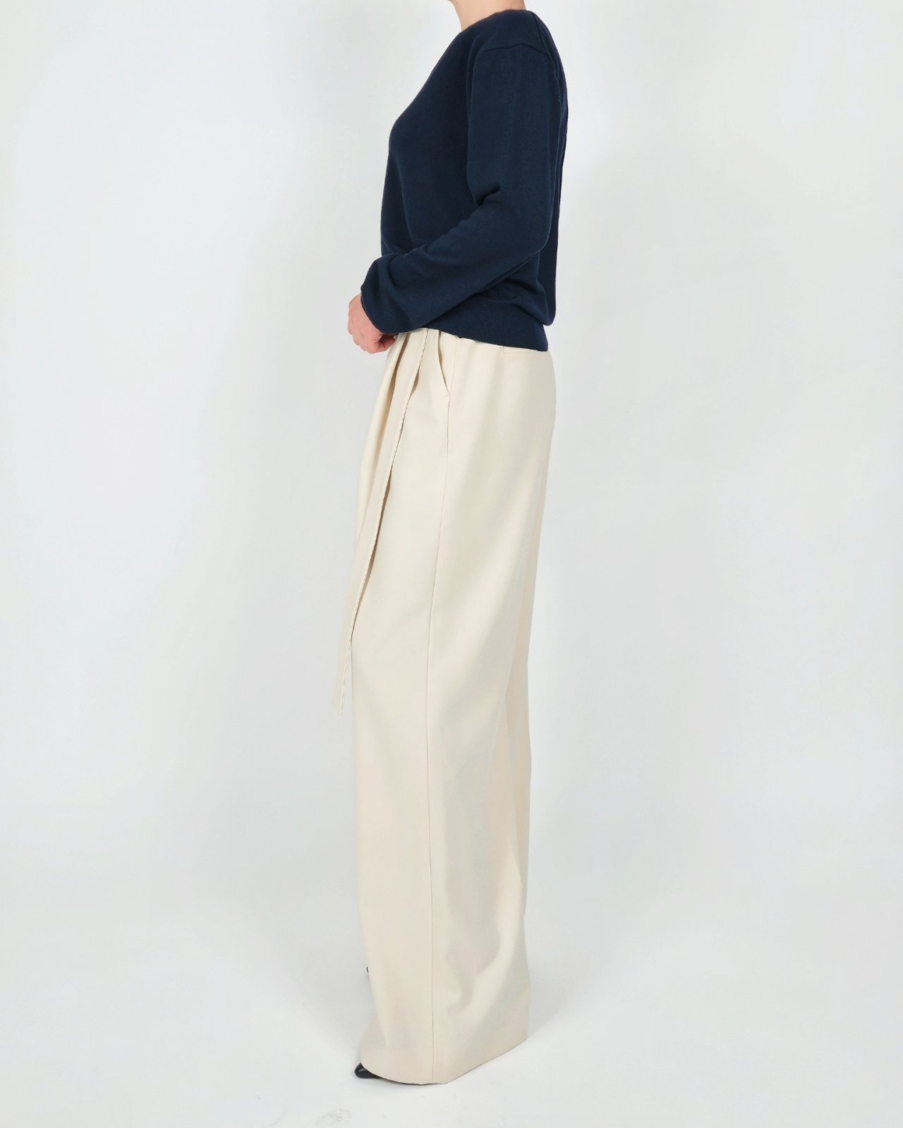 벨티드 플리츠 팬츠