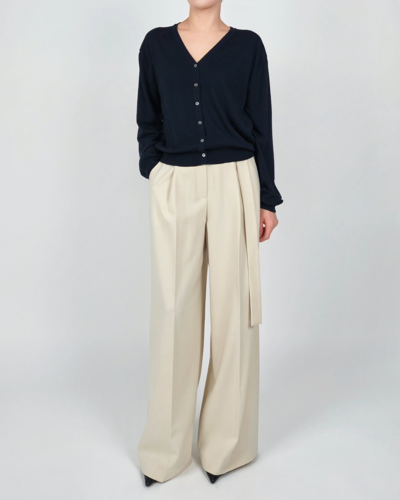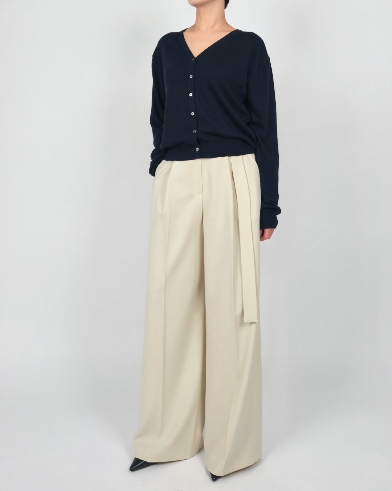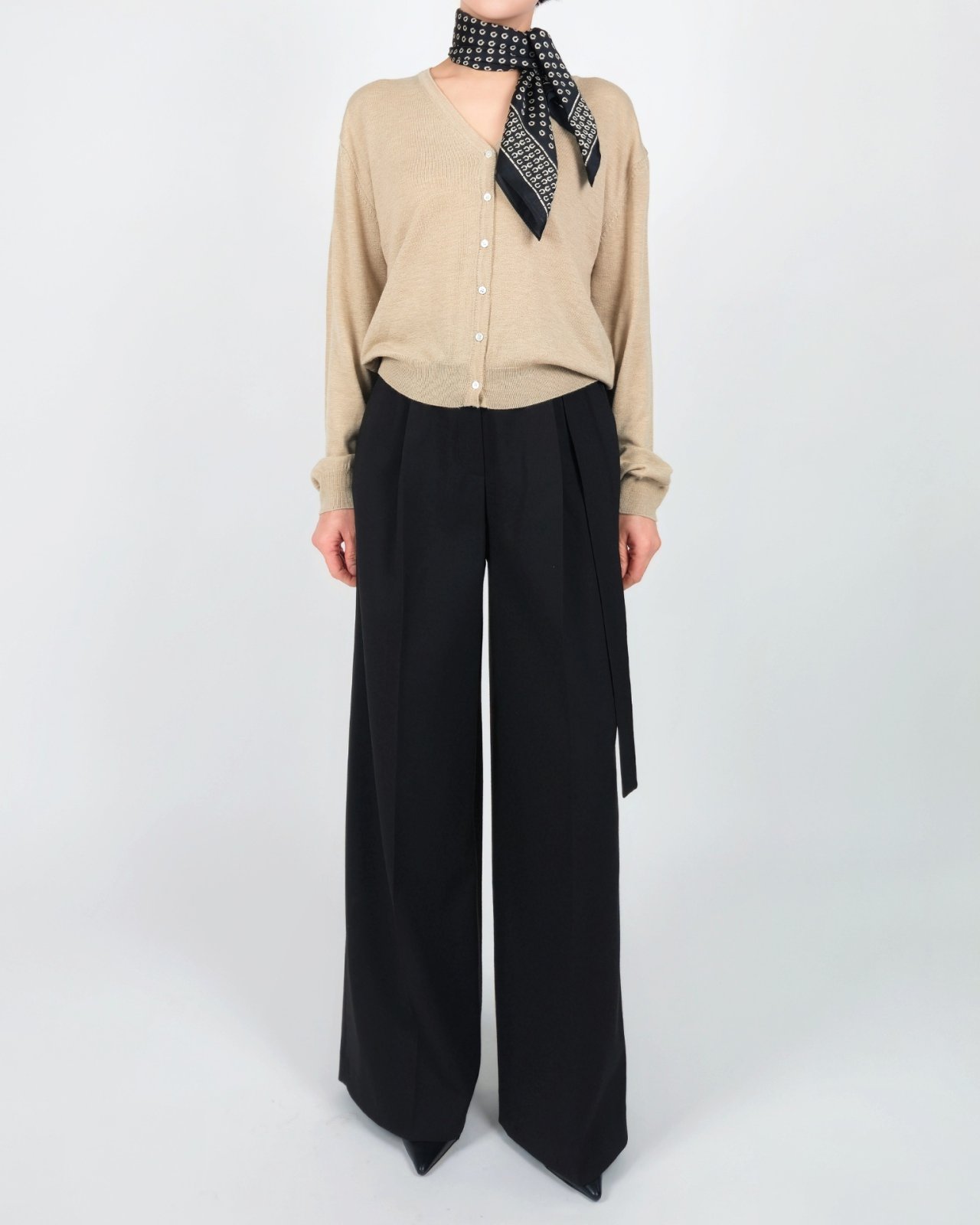 벨티드 플리츠 팬츠