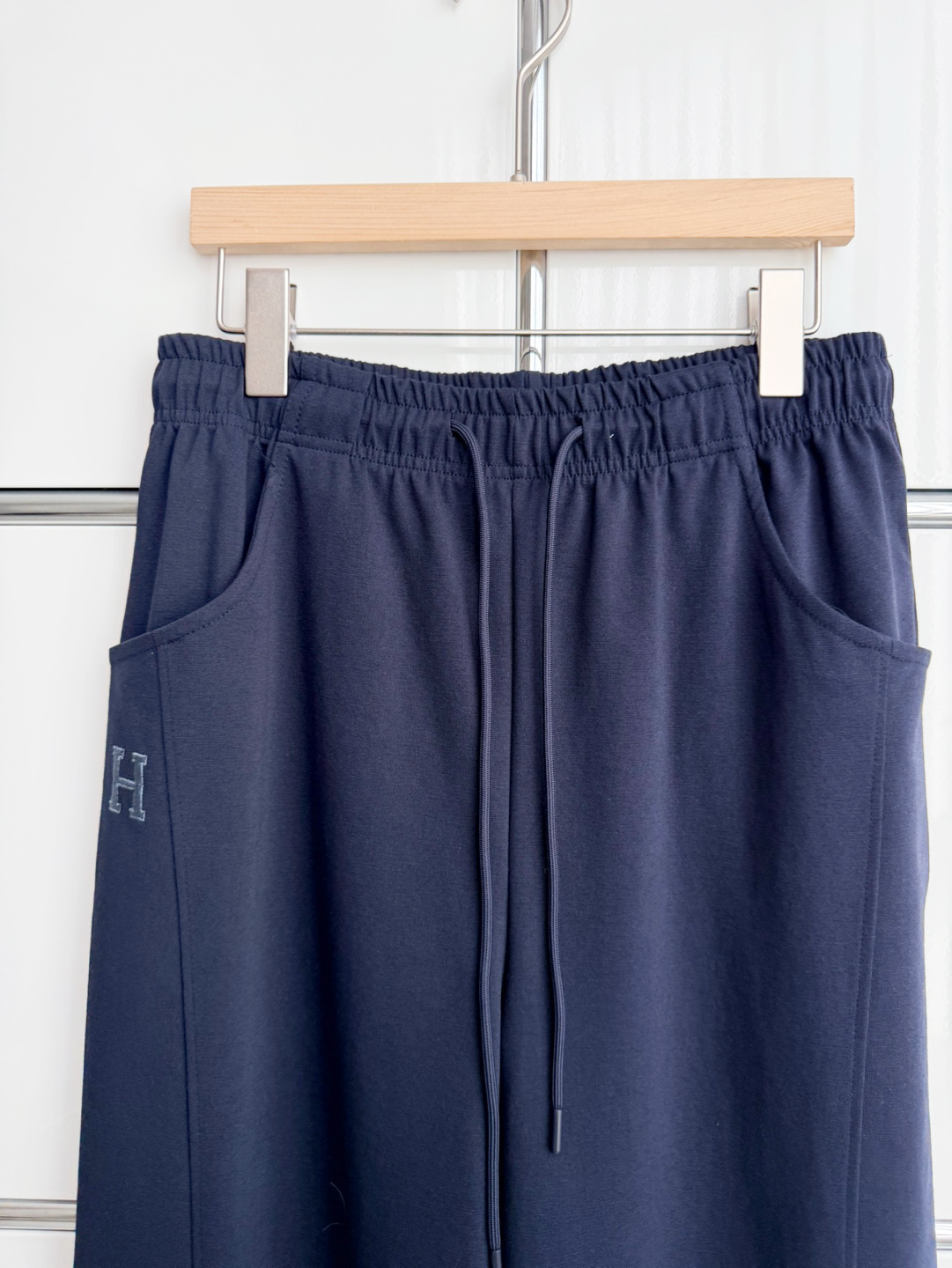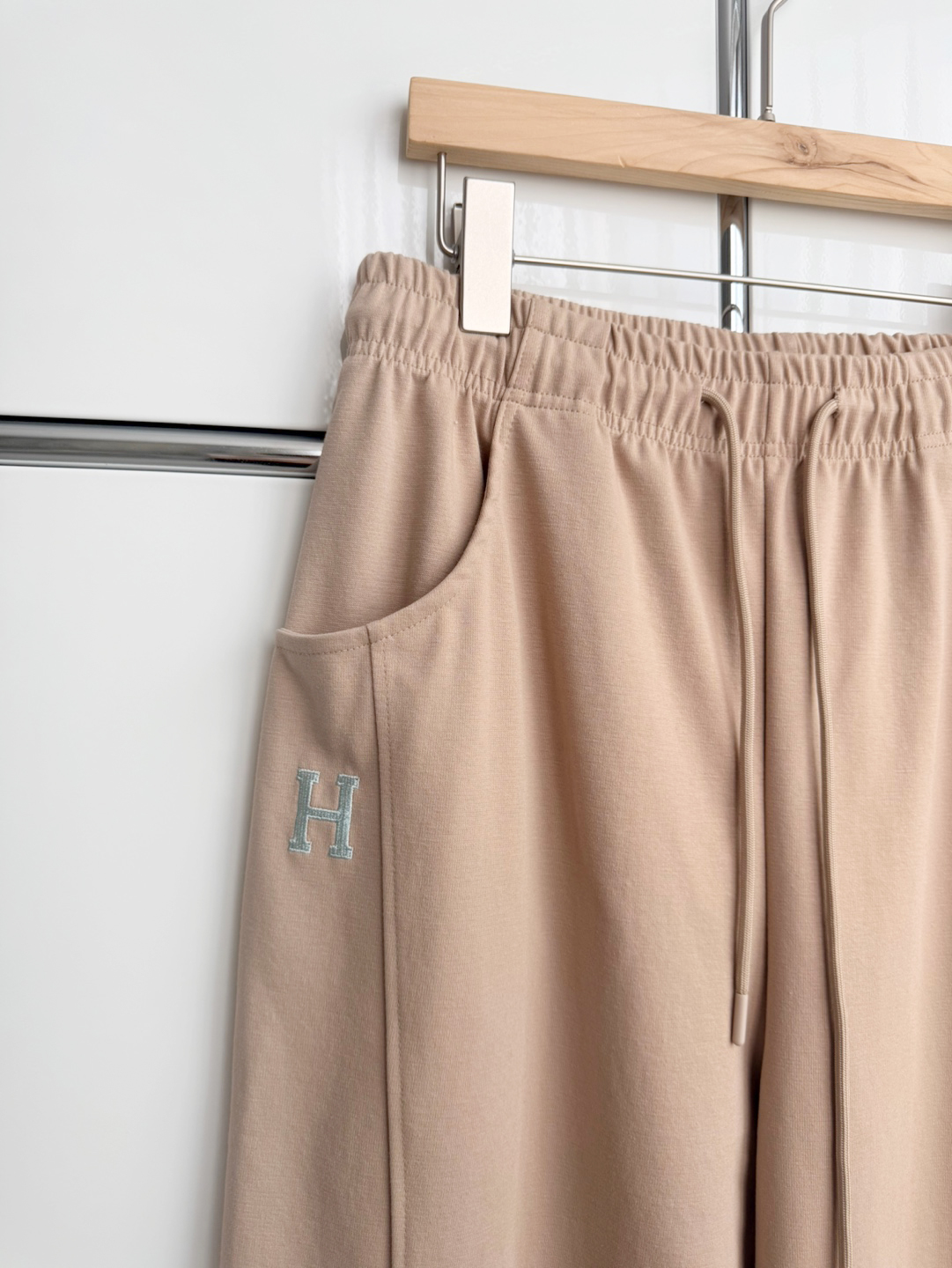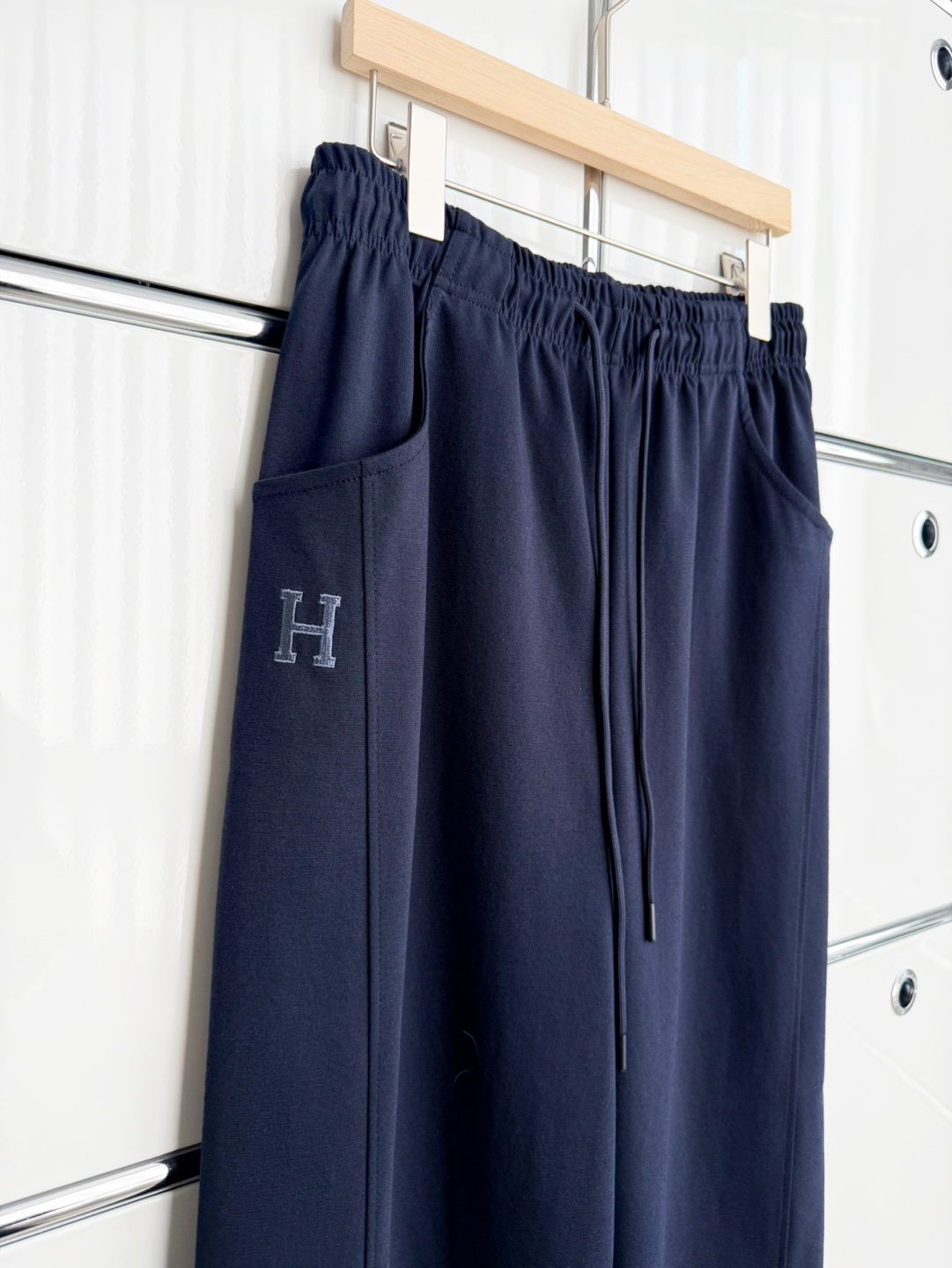 왼쪽 주머니 하단에 배색 자수 로고가 들어가 있어 밋밋함을 덜어주고 브랜드 감성을 더했습니다.