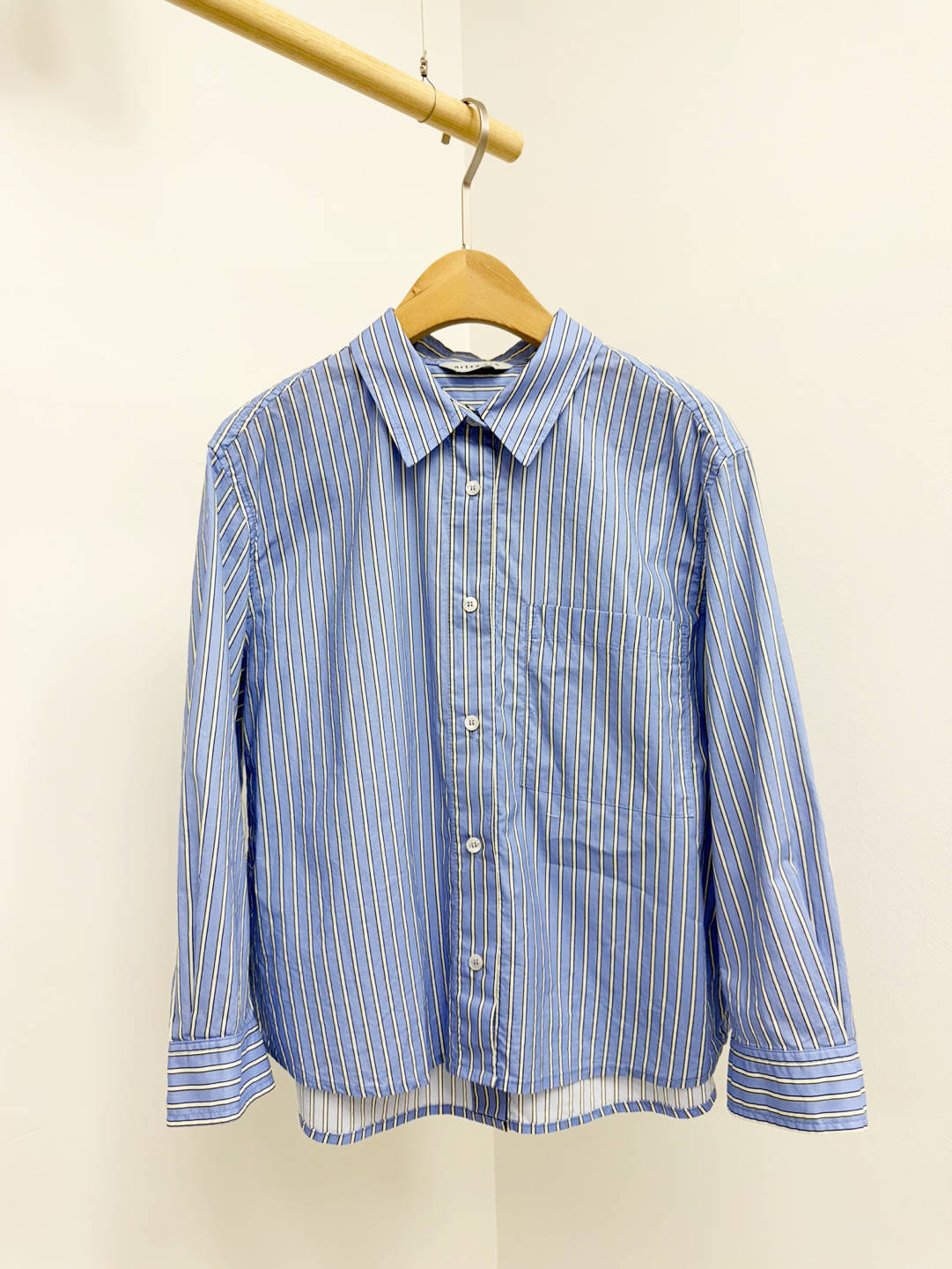 유행을 타지 않는 세로 스트라이프 패턴입니다.
